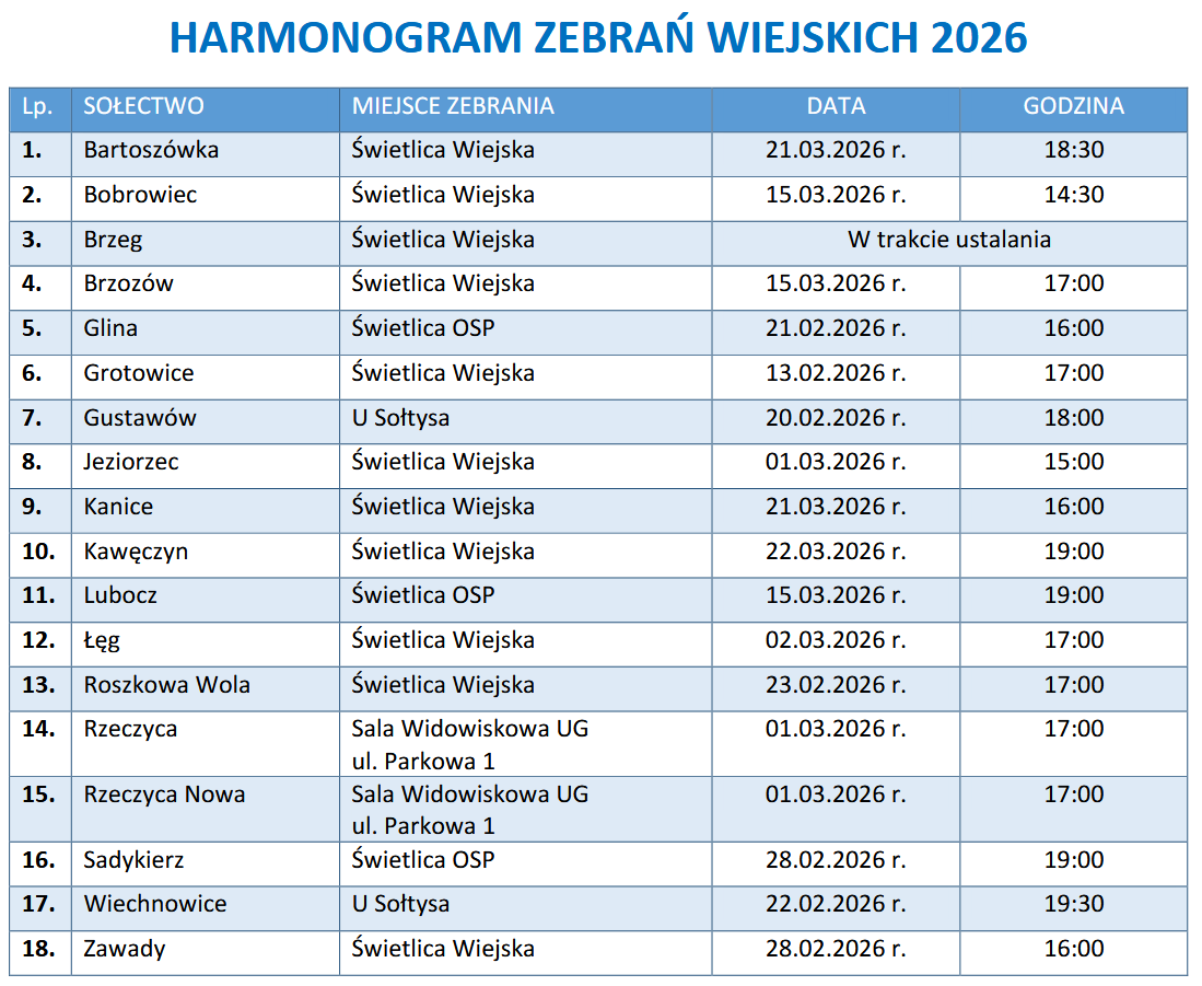 Harmonogram zebrań wiejskich 2026 - aktualizacja |