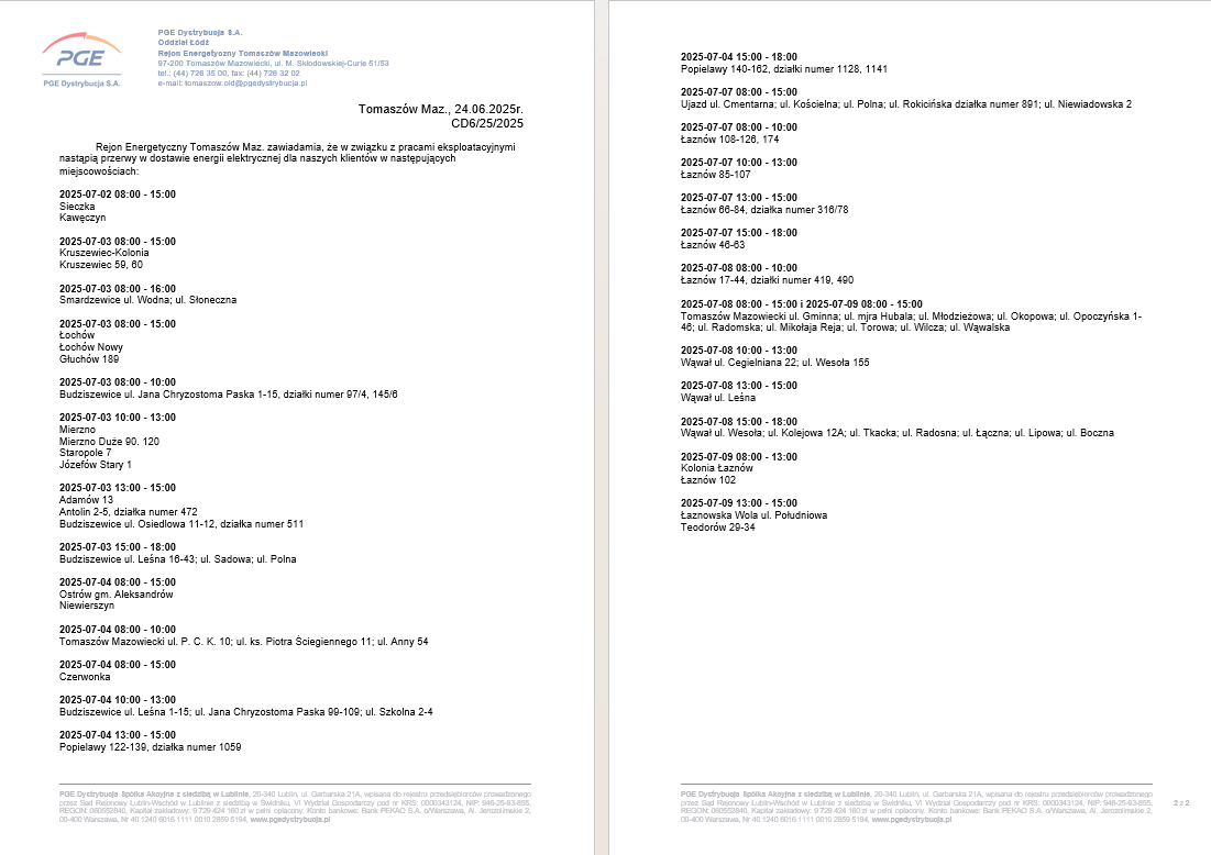 Przerwy w dostawie prądu |