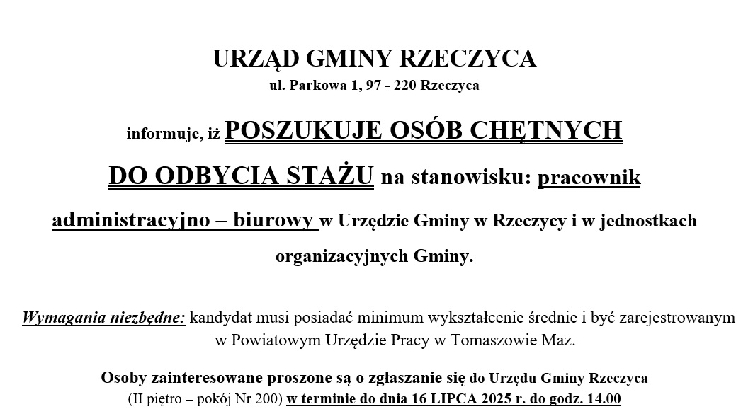 W dniu 26 czerwca 2025 r. (czwartek) Kasa Urzędu Gminy w Rzeczycy będzie NIECZYNNA