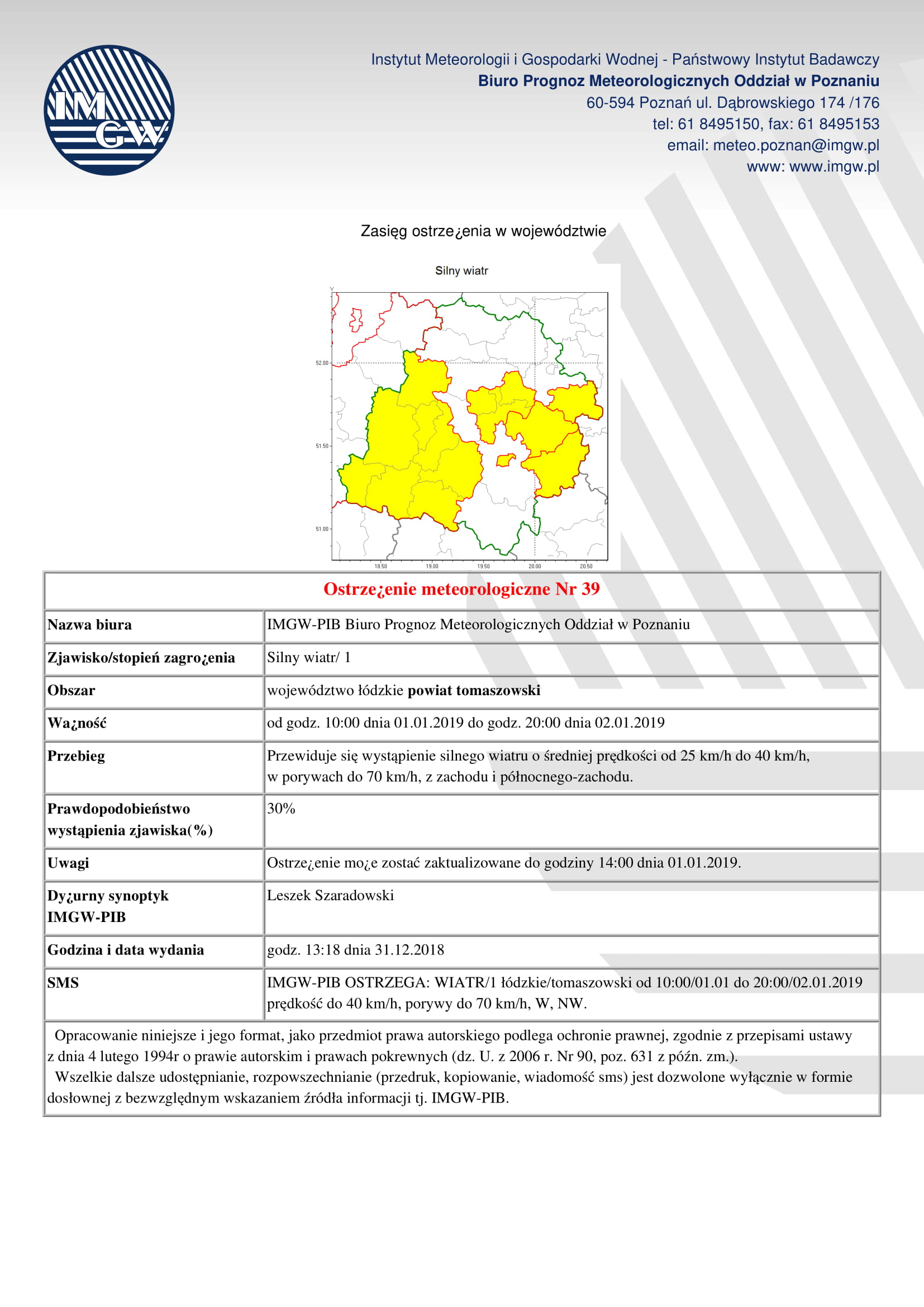 Ostrzeżenie meteorologiczne dot. silnego wiatru |