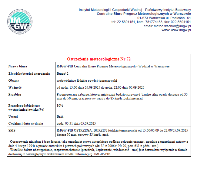 Ostrzeżenie przed burzami |