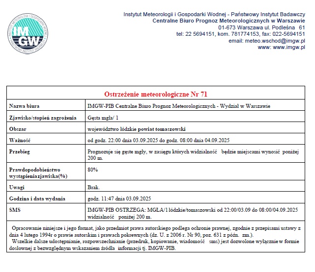 Ostrzeżenie o mgle |