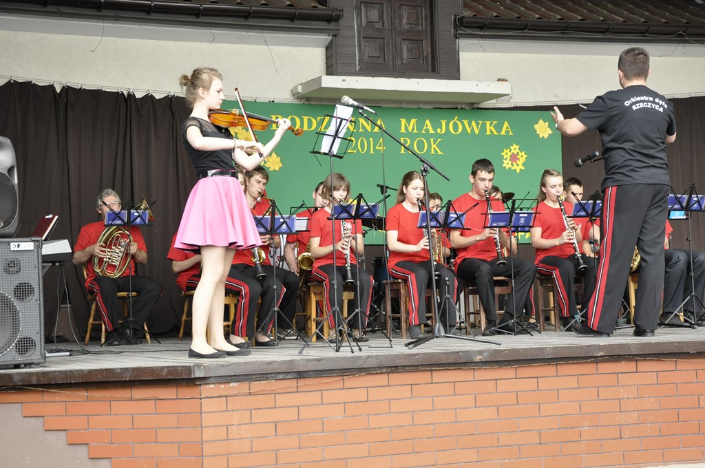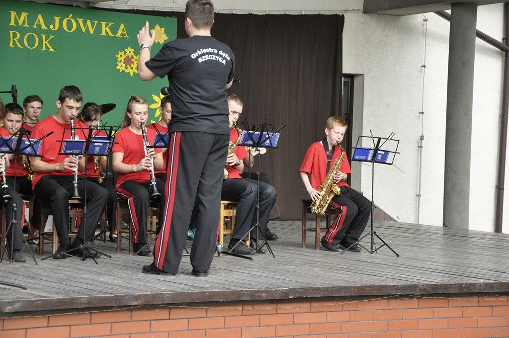 Podczas majówki na scenie prezentowały się zespoły działające w GOK-u: Orkiestra Dęta Rzeczyca wraz z mażoretkami, Zespół Ludowy Mali Rzeczycanie, Zespół Wokalny Muzyczne Iskierki, grupy taneczne: Krzysie oraz Zygzak, uczniowie III klasy Szkoły Podstawowej oraz laureaci VI Festiwalu Piosenki Dziecięcej i Młodzieżowej Złote Łabędzie. Dzieci mogły skorzystać z malowania buziek, włosów i paznokci, pobawić się wspólnie z animatorkami oraz skorzystać z dmuchanych urządzeń placu zabaw. Dorośli mogli skorzystać z majówkowej biesiady przygotowanej przez Koło Gospodyń Katarzynki. Imprezę prowadziły Ewa Staruch oraz Daria Socha.