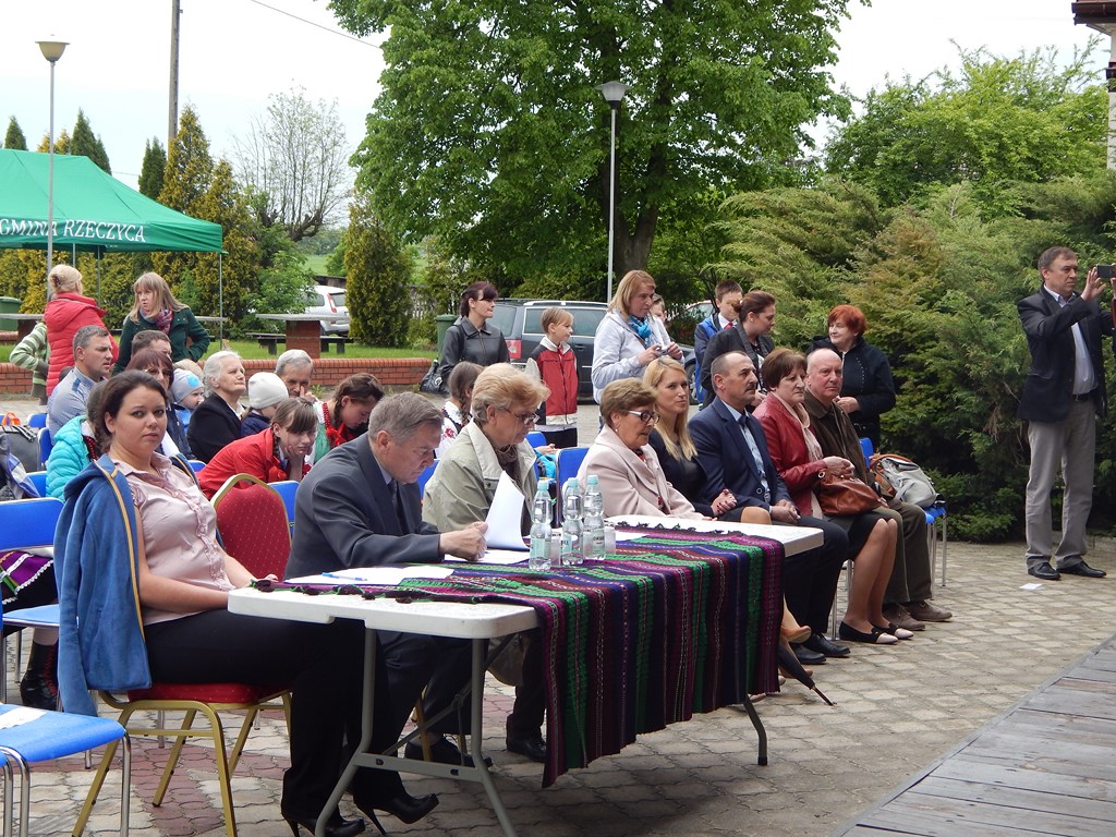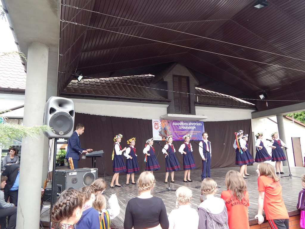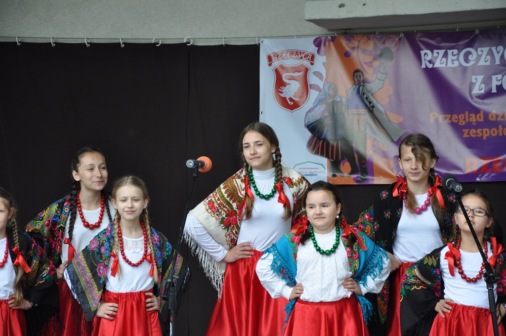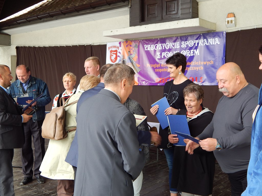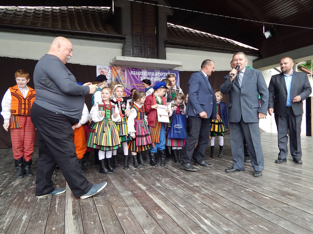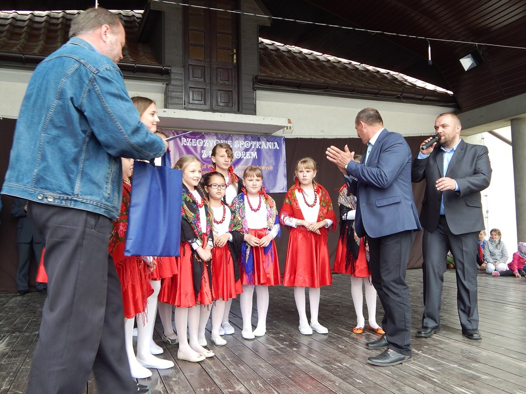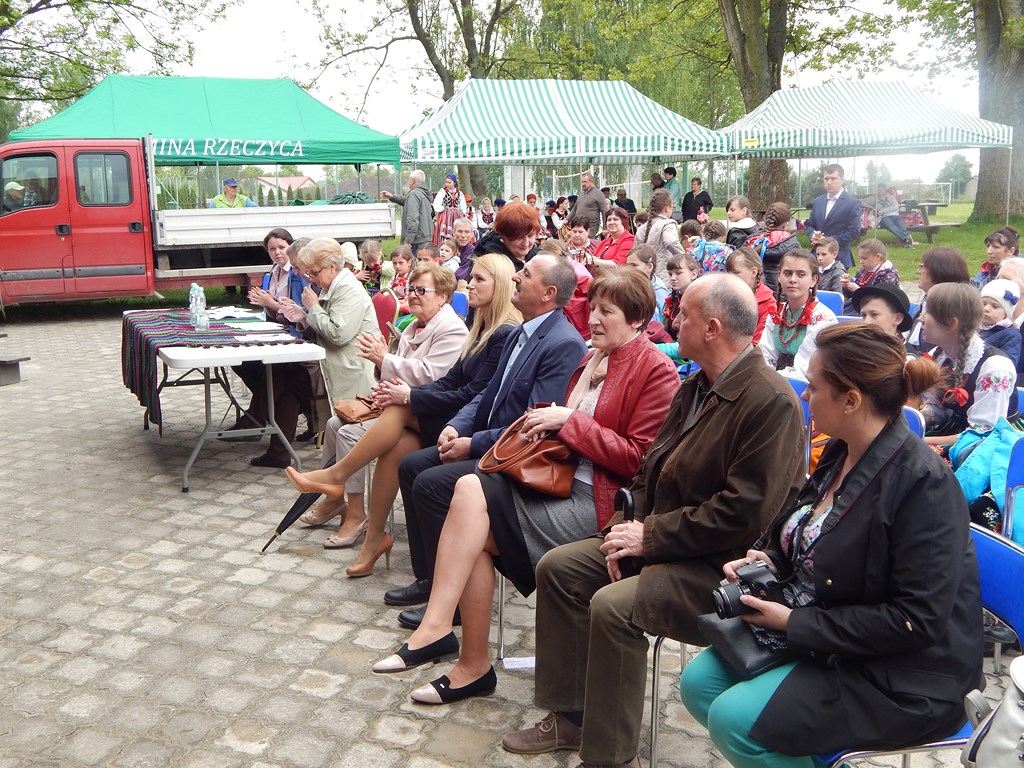 Odwiedziły nas zespoły z Łodzi, Drzewicy, Ozorkowa, Smardzewic, Starej Wojskiej, Konopnicy, Sierzchów oraz Rawy Mazowieckiej. Grand Prix naszego przeglądu zdobył Zespół Podchlebnicki ze Starej Wojskiej. Gości oraz przybyłe zespoły w imieniu organizatorów powitał Dyrektor GOK-u w Rzeczycy Jacek Zakrzewski. Jednym z ważniejszych celów imprezy była integracja dzieci i młodzieży działających w zespołach folklorystycznych. Występy w zespole ludowym to dla dzieci to duże wyzwanie: trzeba dużo wcześniej przyjechać, zrobić próbę, przebrać się w stroje ludowe, czekać na swoją kolej na scenie i najczęściej tuż po występie wracać do domu. Dlatego też poza typową dla przeglądów i festiwali rywalizacją na scenie, organizatorzy przygotowali szereg zabaw dostępnych dla wszystkich uczestników. Można było między innymi: poskakać dmuchanych zabawkach, polepić z gliny czy pouczyć się gry w tenisa. Po prezentacjach konkursowych, w czasie obradowania Jury sceną zawładnęły zespoły działające przy Gminnym Ośrodku Kultury w Rzeczycy. Wystąpiły grupy tańca nowoczesnego Zespół Taneczny Krzysie, Zespół Taneczny Zygzak wraz z młodszą i starszą grupą, Orkiestra Dęta Rzeczyca oraz Kapela Ludowa Gmajów. W Jury zasiedli: dr Jan Łuczkowski- etnomuzykolog, emerytowany Dyrektor Muzeum w Opocznie, Prezes Opoczyńskiego Oddziału Towarzystwa Ludoznawczego; Wiesława Bogurat- etnograf, wieloletni Dyrektor Muzeum w Tomaszowie Maz, Członek Rady Naukowej Stowarzyszenia Twórców Ludowych oraz Katarzyna Makowska- dyplomowany instruktor tańca, wykładowca Państwowej Wyższej Szkoły Zawodowej w Ciechanowie na kierunku kulturoznawstwo –taniec. Grand Prix Rzeczyckich Spotkań z Folklorem zdobył Zespół Podchlebnicki ze Starej Wojskiej prowadzony przez Danutę Dębską, I miejsce zajęli Mali Rzeczycanie z Gminnego Ośrodka Kultury z Rzeczycy, prowadzeni przez Krzysztofa Turałę i Dariusza Nawrockiego. Laureatami II Nagrody został Zespół Mali Smardzewianie ze Smardzewic, którego instruktorami są Jacek Lewandowski oraz Krzysztof Turała. III Nagroda pojechała do Drzewicy a zdobył ją Zespół Mali Drzewiczanie kierowany przez Alinę Szymańska. Jury zdecydowało również o przyznaniu Wyróżnień: - w kategorii choreografia dla Zespołu Pieśni i Tańca Poltex z Łodzi (instruktor Iwona Brzezińska) -w kategorii wokal dla Zespołu Sierzchowskie Dzieciaki z Sierzchów (instruktorzy Elżbieta Kryjan oraz Piotr Pietrzak) - w kategorii inspiracje folklorem dla Zespołu Mała Konopniczanka z Konopnicy (instruktor Grzegorz Antkowiak) - w kategorii kapela - dla kapeli Od Lesiewa z Rawy Mazowieckiej (instruktor Grzegorz Antkowiak ) - w kategorii gry i zabawy dla Zespołu Ozorkowianie z Ozorkowa(instruktor Iwona Brzezińska) Wójt Gminy Rzeczyca oraz Gminny Ośrodek Kultury serdecznie dziękują wszystkim osobom które włączyły się w organizację imprezy: Pani Katarzynie Kłopotowskiej Radnej Rady Gminy Rzeczyca za poprowadzenie warsztatów z gliny, Panu Cezaremu Wasiakowi za zorganizowanie zajęć tenisa ziemnego. Szczególne podziękowania należą się rodzicom dzieci z Zespołu Mali Rzeczycanie za przygotowanie poczęstunku dla instruktorów oraz za pomoc podczas imprezy.