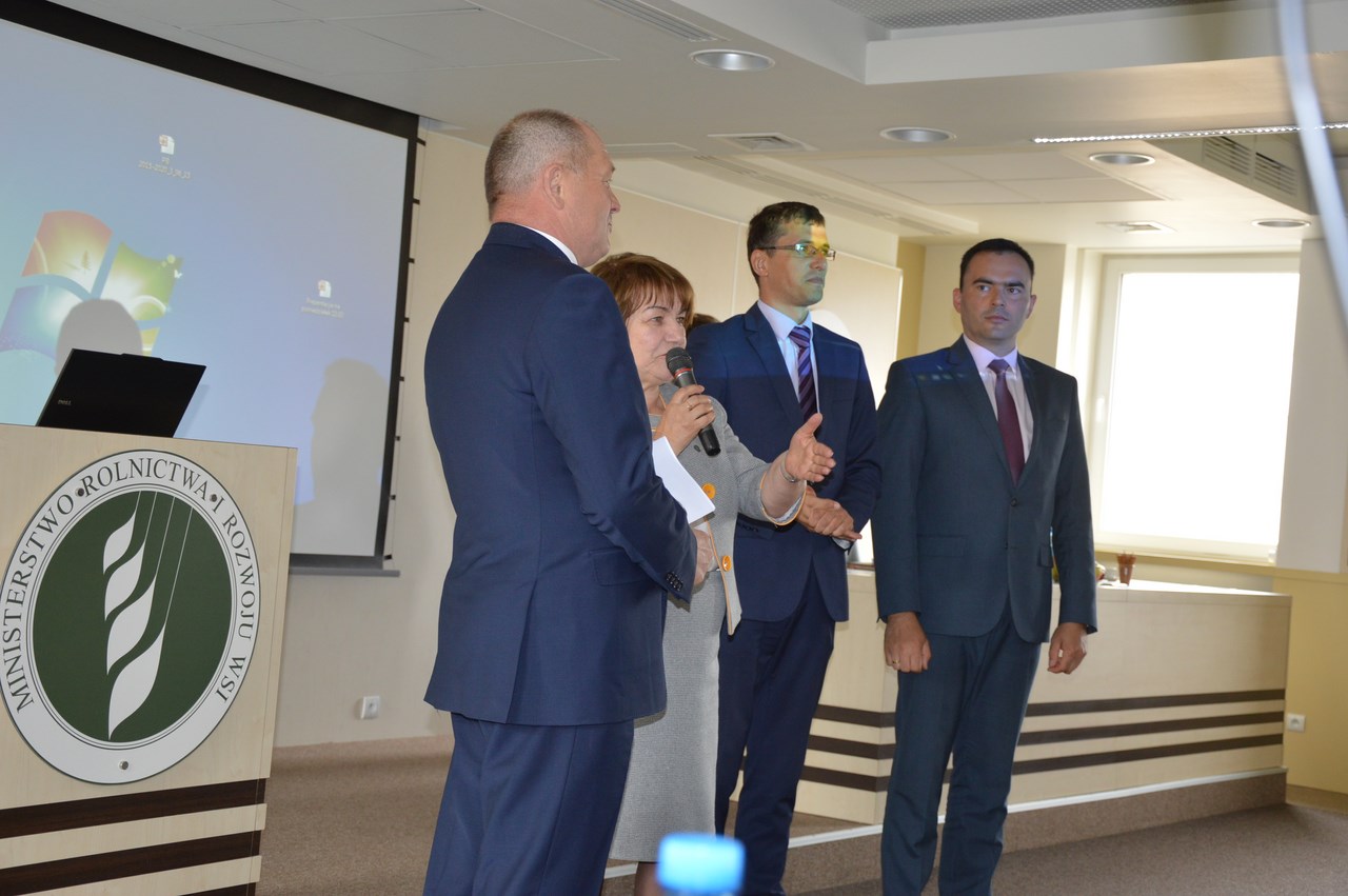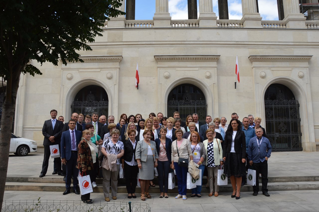 Po krótkim przemówieniu Pan Minister wyczerpująco odpowiadał na pytania obecnych na szkoleniu rolników. Program szkolenia obejmował prezentacje efektów wdrażania PROW 2007-2013 oraz nowego okresu programowania PROW 2014- 2020, prezentację pt. „Rolnik ON- system zarządzania gospodarstwem", następnie przystąpiono do prezentacji „Wymagań weterynaryjnych przy sprzedaży bezpośredniej produktów pochodzenia zwierzęcego oraz prowadzenia produkcji i sprzedaży produktów pochodzenia zwierzęcego w ramach działalności marginalnej, lokalnej i ograniczonej". Największą liczbę pytań i wątpliwości wywołała prezentacja dotycząca nowego systemu płatności bezpośrednich w Polsce w latach 2015-2020 oraz dopłat powierzchniowych. Po zakończeniu szkolenia wszyscy uczestnicy otrzymali drobne upominki oraz pisemne podziękowanie za uczestnictwo w szkoleniu dotyczącym Programu Rozwoju Obszarów Wiejskich na lata 2014-2020 oraz płatności bezpośrednich w Polsce w latach 2014-2020. Na zakończenie Pani Poseł Krystyna Ozga oprowadziła uczestników szkolenia po kompleksie gmachów Sejmowych przybliżając prace Sejmu, jak również prace posła. Każdy z obecnych mógł na własne oczy przyjrzeć się gabinetom, w których pracują posłowie i senatorowie a także od środka poznać życie sejmowych korytarzy. Pani Poseł oprowadzając zebranych poświęciła dłuższą chwilę przy tablicy upamiętniającej tragiczne wydarzenia z katastrofy lotniczej w Smoleńsku z 10 kwietnia 2010r.
