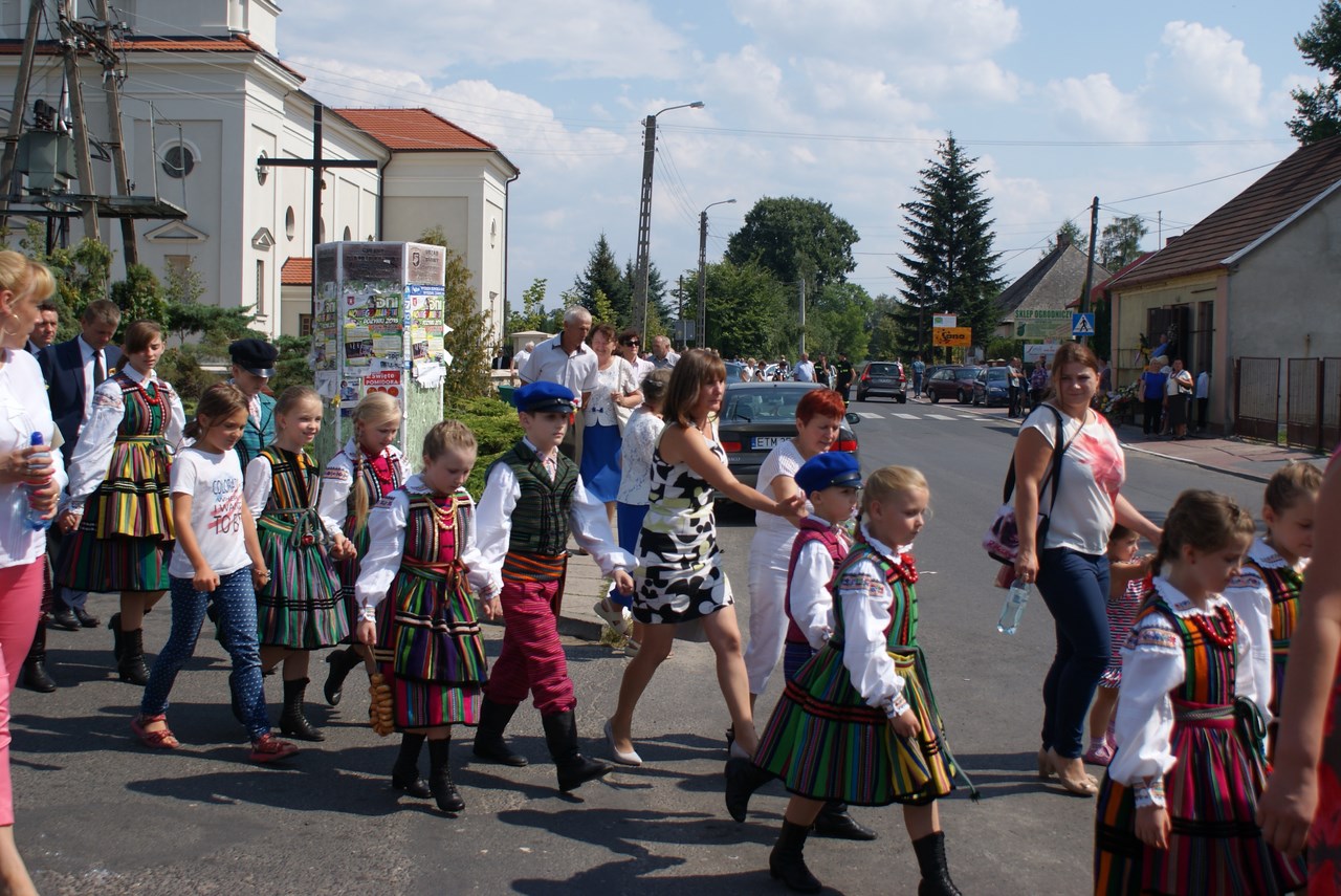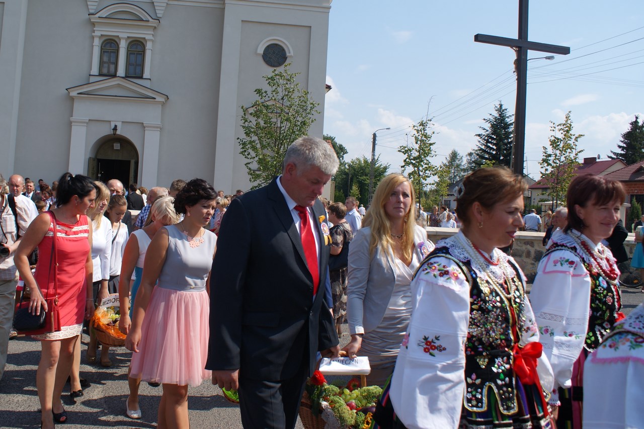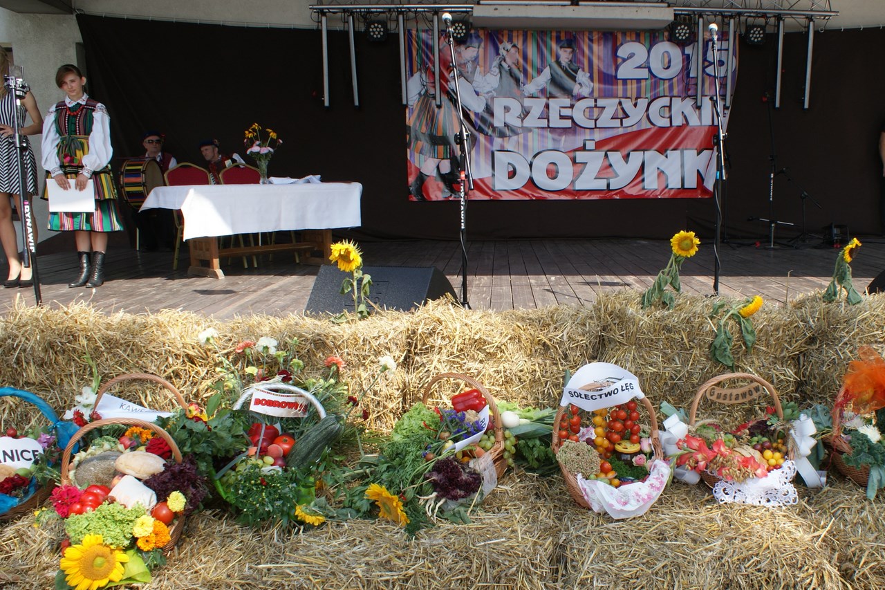 Dzięki staraniom organizatorów, Dożynki w Rzeczycy z roku na rok cieszą się coraz większym zainteresowaniem. Również i w tym roku nie zabrakło atrakcji a dożynkowe świętowanie trwało ponad 12 godzin. Oprócz najważniejszej, części obrzędowej na mieszkańców czekała bogata estrada z wieloma rzeczyckimi wykonawcami i gośćmi oraz szereg innych atrakcji towarzyszących. Swoją obecnością zaszczyciło nas wielu gości, byli to między innymi: Wiceprezes Zarządu Oddziału Wojewódzkiego ZOSP RP w Łodzi dh Tadeusz Cisowski Dyrektor Centrum Kształcenia Ustawicznego Województwa Łódzkiego w Tomaszowie Maz. Iwona Gawron, Sekretarz Powiatu Tomaszowskiego Jerzy Kowalczyk, Członek Zarządu Powiatu Tomaszowskiego Barbara Robak, Radny Powiatu Tomaszowskiego Paweł Piwowarski, Zastępca Kierownika Placówki KRUS w Tomaszowie Maz. Barbara Wojtaszek, Komendant Komisariatu Policji w Czerniewicach podinsp. Zbigniew Warczyk, reprezentujący Dowódcę 25 Brygady Kawalerii powietrznej - mjr Tomasz Liburski, Komendant Straży Leśnej Nadleśnictwa Spała Wojciech Frączak, reprezentujący Ośrodek Doradztwa Rolniczego Michał Miniatorski, Pełnomocnik Prezesa do Spraw Medycznych Tomaszowskiego Centrum Zdrowia Kamil Szyszow, Burmistrz Nowego Miasta Mariusz Dziuba oraz Wójt Gminy Inowłódz Bogdan Kącki. Dożynki Rzeczyckie jak każe tradycja rozpoczęły się Mszą Świętą w Rzeczyckim kościele parafialnym. Dożynkowy korowód wraz z władzami gminy, starostami, grupami wieńcowymi oraz rolnikami i wszystkimi uczestnikami Dożynek powitał Proboszcz Ks. Henryk Linarcik. Mszę Świętą w intencji rolników oraz jako dziękczynienie za plony odprawił pochodzący z Rzeczycy Ks. Rafał Banasiak. W liturgii czynnie uczestniczyli mieszkańcy miejscowości z których pochodzą starostowie: Roszkowej Woli i Wiechnowic, czytając czytania, śpiewając psalm oraz uczestnicząc w procesji z darami wraz z mieszkańcami Gliny. Doniosłą oprawę zapewnił Rzeczycki Chór Parafialny pod kierownictwem Zbigniewa Laskowskiego. Uroczysty dożynkowy korowód przeszedł ulicami Rzeczycy na teren GOK-u prowadzony przez Orkiestrę Dętą Rzeczyca wraz z Mażoretkami. Zaszczyt rozpoczęcia Dożynek 2015 przypadł Karolinie Noga, która przeczytała wiersz „Po żniwach" Genowefy Kosiackiej- Bąk z Rzeczycy a o dożynkach w Rzeczycy opowiedział Dyrektor GOK Jacek Zakrzewski. Włodarze gminy Wójt Marek Kaźmierczyk oraz reprezentujący Radę Gminy Wiceprzewodniczący Janusz Baran jako gospodarze imprezy powitali zaproszonych gości, rolników oraz mieszkańców gminy. Jak każe tradycja Starosta Dożynkowy Jacek Sobczak wręczył gospodarzowi gminy Wójtowi Markowi Kaźmierczykowi bochen chleba wypieczony z mąki z tegorocznych zbiorów, natomiast Starościna Wioletta Socha obdarowała Wiceprzewodniczącego RG Janusza Barana garnuszkiem miodu. Najważniejszym elementem żniwnych tradycji jest obrzęd wieńcowy, który rozpoczęli mieszkańcy Wiechnowic z towarzyszeniem kapeli. Piękny wieniec symbolizujący garniec miodu, po wysłuchaniu tradycyjnych przyśpiewek otrzymał Wójt Gminy. Równie piękny wieniec zawierający symbole związane z Roszkowa Wolą, miedzy innymi portret Bł. Franciszki Siedliskiej wniosły na scenę gospodynie z Roszkowej Woli zrzeszone w Koło Gospodyń Wiejskich i ubrane w tradycyjne wełniaki. Po wyśpiewaniu przyśpiewek obdarowały nim WiceprzewodniczącegoRady Gminy. Wójt Marek Kaźmierczyk zabierając głos dziękował za otrzymane dożynkowe dary, dziękował rolnikom za ich wysiłek włożony w pracę na roli. Podkreślał fakt olbrzymiego znaczenia rolnictwa dla zrównoważonego rozwoju gospodarki w kraju oraz wskazywał je jako filar naszej gminy. Wójt podziękował również wszystkim którzy zaangażowali się w organizacje dożynek. Gmina Rzeczyca ma wielu przyjaciół, którzy wspierają mieszkańców i władze gminy w codziennym funkcjonowaniu oraz w prowadzonych inwestycjach. Osoby te zostały obdarowane przez Wójta koszami dożynkowymi wykonanymi przez sołectwa naszej gminy. Gmina nasza ma wielu przyjaciół, a koszy było tylko 16, więc pozostali goście otrzymali symboliczny wór zboża z pola starosty dożynkowego, wręczany przez Zastępcę Wójta Iwonę Łuszcz Krawczyk oraz Wiceprzewodniczącego Janusza Barana. Na tym zakończyła się część obrzędowa która prowadziły Marta Kosiacka –Bąk oraz Aleksandra Gwizdoń. Część artystyczną rozpoczął Kabaret Wcięci Przypadkiem z Sadykierza przejmując zapowiedzi pozostałych wykonawców.Następnie występowały zespoły działające przy rzeczyckiej instytucji kultury. Jako pierwsza -Orkiestra Dęta Rzeczyca z własnym programem rozrywkowym. Po raz pierwszy akompaniowała na żywo Zespołowi Ludowemu Mali Rzeczycanie, który wykonał nowy program pt. „Kotek". Sceną zawładnęli również tancerze: Zespół Taneczny Zygzak oraz Zespół Taneczny Krzysie. Zespoły Gok-u przygotowywali Krzysztof Turała, Mirosław Murgrabia, Dariusz Nawrocki oraz Karolina Walczyk. Swoje wokalne umiejętności zaprezentowała Marianna Pawlak z Brzezin, wykonując wraz ze swoimi prawnuczkami Julią i Aleksandrą Chmielewskimi repertuar z Ogólnopolskiego Festiwalu Kapel i Śpiewaków Ludowych w Kazimierzu Dolnym. Nie może być Dożynek bez naszych ludowych kapel. Kapela Gmajów jak co roku zaprezentowała repertuar dożynkowy, natomiast Kapela Bobrowianie po raz pierwszy pokazała na scenie odzyskane niedawno przez GOK ponad stuletnie basy wykonane przez legendarnego Cabałę- muzykanta i majstra z naszej okolicy. Tę część estrady zakończył występ gości grających starą, ludową muzykę do tańca jako Zawołany Skład Weselny. Nadszedł na scenie czas dla najmłodszych, którzy już od kilku godzin byli zabawiani przez animatorów szczudlarzy z grupy Twórcze Ja, którzy zawitali do Rzeczycy po raz pierwszy.Również niespotykanym wcześniej programem bawił doskonale nie tylko najmłodszych ale i