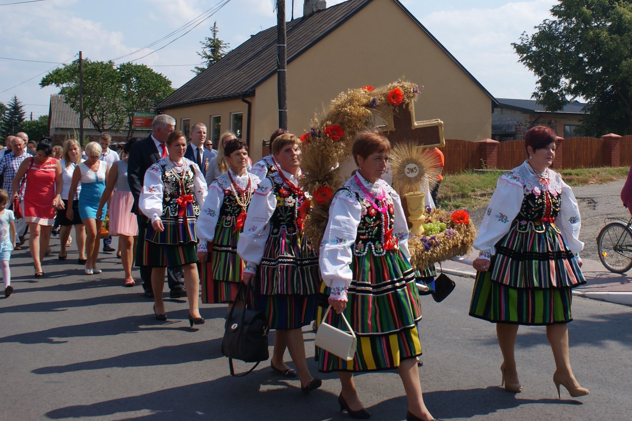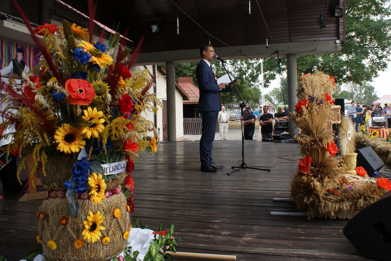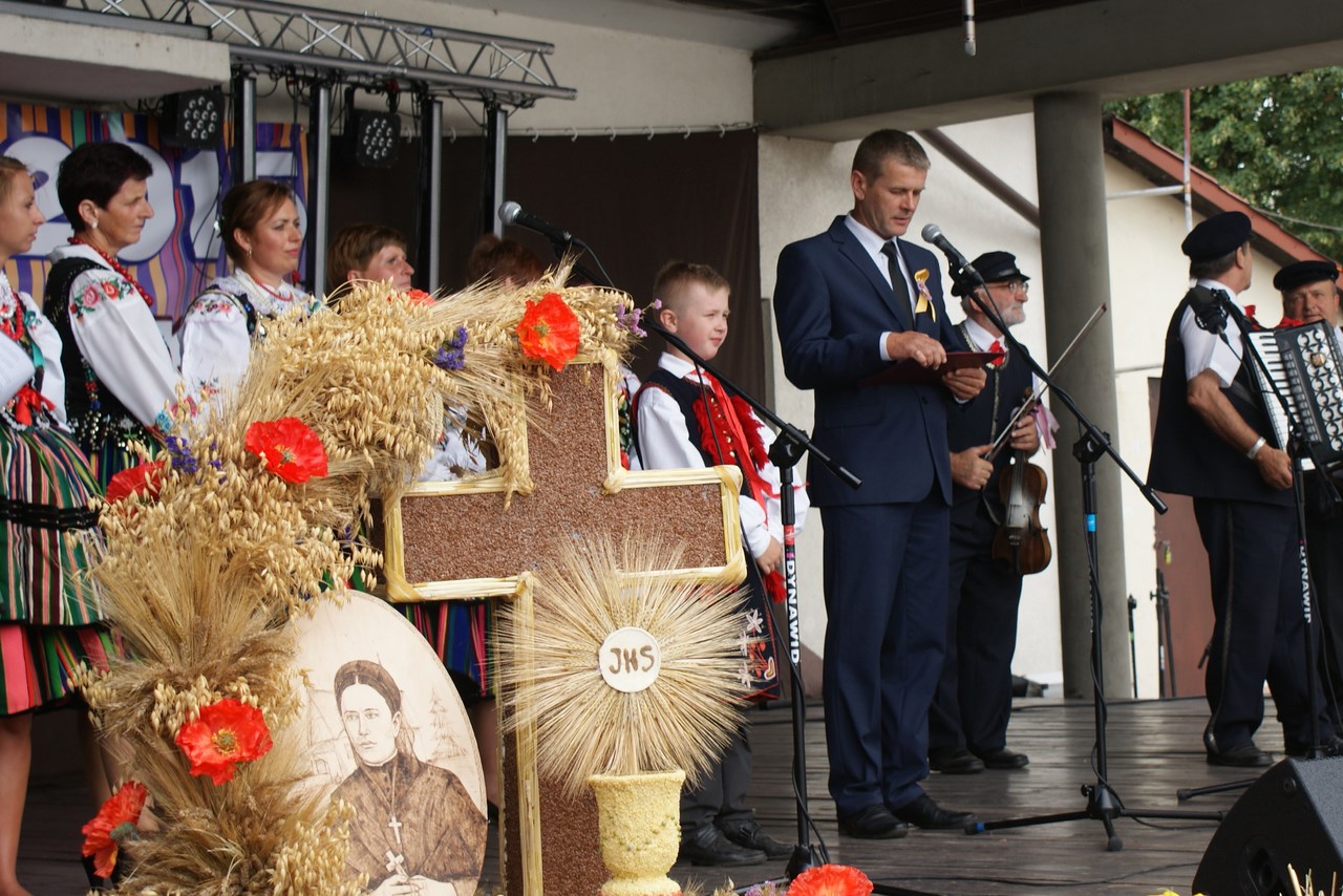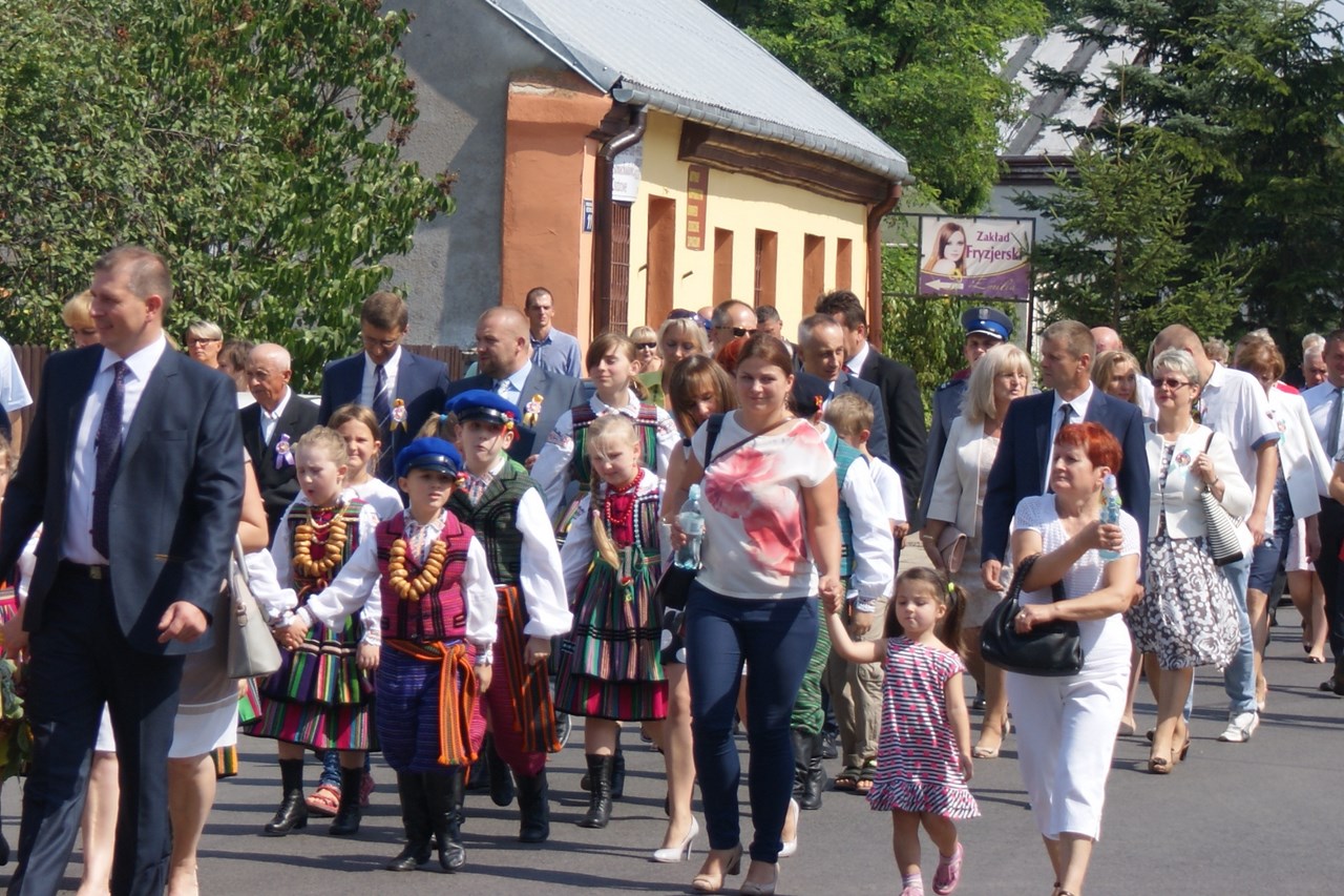 Dzięki staraniom organizatorów, Dożynki w Rzeczycy z roku na rok cieszą się coraz większym zainteresowaniem. Również i w tym roku nie zabrakło atrakcji a dożynkowe świętowanie trwało ponad 12 godzin. Oprócz najważniejszej, części obrzędowej na mieszkańców czekała bogata estrada z wieloma rzeczyckimi wykonawcami i gośćmi oraz szereg innych atrakcji towarzyszących. Swoją obecnością zaszczyciło nas wielu gości, byli to między innymi: Wiceprezes Zarządu Oddziału Wojewódzkiego ZOSP RP w Łodzi dh Tadeusz Cisowski Dyrektor Centrum Kształcenia Ustawicznego Województwa Łódzkiego w Tomaszowie Maz. Iwona Gawron, Sekretarz Powiatu Tomaszowskiego Jerzy Kowalczyk, Członek Zarządu Powiatu Tomaszowskiego Barbara Robak, Radny Powiatu Tomaszowskiego Paweł Piwowarski, Zastępca Kierownika Placówki KRUS w Tomaszowie Maz. Barbara Wojtaszek, Komendant Komisariatu Policji w Czerniewicach podinsp. Zbigniew Warczyk, reprezentujący Dowódcę 25 Brygady Kawalerii powietrznej - mjr Tomasz Liburski, Komendant Straży Leśnej Nadleśnictwa Spała Wojciech Frączak, reprezentujący Ośrodek Doradztwa Rolniczego Michał Miniatorski, Pełnomocnik Prezesa do Spraw Medycznych Tomaszowskiego Centrum Zdrowia Kamil Szyszow, Burmistrz Nowego Miasta Mariusz Dziuba oraz Wójt Gminy Inowłódz Bogdan Kącki. Dożynki Rzeczyckie jak każe tradycja rozpoczęły się Mszą Świętą w Rzeczyckim kościele parafialnym. Dożynkowy korowód wraz z władzami gminy, starostami, grupami wieńcowymi oraz rolnikami i wszystkimi uczestnikami Dożynek powitał Proboszcz Ks. Henryk Linarcik. Mszę Świętą w intencji rolników oraz jako dziękczynienie za plony odprawił pochodzący z Rzeczycy Ks. Rafał Banasiak. W liturgii czynnie uczestniczyli mieszkańcy miejscowości z których pochodzą starostowie: Roszkowej Woli i Wiechnowic, czytając czytania, śpiewając psalm oraz uczestnicząc w procesji z darami wraz z mieszkańcami Gliny. Doniosłą oprawę zapewnił Rzeczycki Chór Parafialny pod kierownictwem Zbigniewa Laskowskiego. Uroczysty dożynkowy korowód przeszedł ulicami Rzeczycy na teren GOK-u prowadzony przez Orkiestrę Dętą Rzeczyca wraz z Mażoretkami. Zaszczyt rozpoczęcia Dożynek 2015 przypadł Karolinie Noga, która przeczytała wiersz „Po żniwach" Genowefy Kosiackiej- Bąk z Rzeczycy a o dożynkach w Rzeczycy opowiedział Dyrektor GOK Jacek Zakrzewski. Włodarze gminy Wójt Marek Kaźmierczyk oraz reprezentujący Radę Gminy Wiceprzewodniczący Janusz Baran jako gospodarze imprezy powitali zaproszonych gości, rolników oraz mieszkańców gminy. Jak każe tradycja Starosta Dożynkowy Jacek Sobczak wręczył gospodarzowi gminy Wójtowi Markowi Kaźmierczykowi bochen chleba wypieczony z mąki z tegorocznych zbiorów, natomiast Starościna Wioletta Socha obdarowała Wiceprzewodniczącego RG Janusza Barana garnuszkiem miodu. Najważniejszym elementem żniwnych tradycji jest obrzęd wieńcowy, który rozpoczęli mieszkańcy Wiechnowic z towarzyszeniem kapeli. Piękny wieniec symbolizujący garniec miodu, po wysłuchaniu tradycyjnych przyśpiewek otrzymał Wójt Gminy. Równie piękny wieniec zawierający symbole związane z Roszkowa Wolą, miedzy innymi portret Bł. Franciszki Siedliskiej wniosły na scenę gospodynie z Roszkowej Woli zrzeszone w Koło Gospodyń Wiejskich i ubrane w tradycyjne wełniaki. Po wyśpiewaniu przyśpiewek obdarowały nim WiceprzewodniczącegoRady Gminy. Wójt Marek Kaźmierczyk zabierając głos dziękował za otrzymane dożynkowe dary, dziękował rolnikom za ich wysiłek włożony w pracę na roli. Podkreślał fakt olbrzymiego znaczenia rolnictwa dla zrównoważonego rozwoju gospodarki w kraju oraz wskazywał je jako filar naszej gminy. Wójt podziękował również wszystkim którzy zaangażowali się w organizacje dożynek. Gmina Rzeczyca ma wielu przyjaciół, którzy wspierają mieszkańców i władze gminy w codziennym funkcjonowaniu oraz w prowadzonych inwestycjach. Osoby te zostały obdarowane przez Wójta koszami dożynkowymi wykonanymi przez sołectwa naszej gminy. Gmina nasza ma wielu przyjaciół, a koszy było tylko 16, więc pozostali goście otrzymali symboliczny wór zboża z pola starosty dożynkowego, wręczany przez Zastępcę Wójta Iwonę Łuszcz Krawczyk oraz Wiceprzewodniczącego Janusza Barana. Na tym zakończyła się część obrzędowa która prowadziły Marta Kosiacka –Bąk oraz Aleksandra Gwizdoń. Część artystyczną rozpoczął Kabaret Wcięci Przypadkiem z Sadykierza przejmując zapowiedzi pozostałych wykonawców.Następnie występowały zespoły działające przy rzeczyckiej instytucji kultury. Jako pierwsza -Orkiestra Dęta Rzeczyca z własnym programem rozrywkowym. Po raz pierwszy akompaniowała na żywo Zespołowi Ludowemu Mali Rzeczycanie, który wykonał nowy program pt. „Kotek". Sceną zawładnęli również tancerze: Zespół Taneczny Zygzak oraz Zespół Taneczny Krzysie. Zespoły Gok-u przygotowywali Krzysztof Turała, Mirosław Murgrabia, Dariusz Nawrocki oraz Karolina Walczyk. Swoje wokalne umiejętności zaprezentowała Marianna Pawlak z Brzezin, wykonując wraz ze swoimi prawnuczkami Julią i Aleksandrą Chmielewskimi repertuar z Ogólnopolskiego Festiwalu Kapel i Śpiewaków Ludowych w Kazimierzu Dolnym. Nie może być Dożynek bez naszych ludowych kapel. Kapela Gmajów jak co roku zaprezentowała repertuar dożynkowy, natomiast Kapela Bobrowianie po raz pierwszy pokazała na scenie odzyskane niedawno przez GOK ponad stuletnie basy wykonane przez legendarnego Cabałę- muzykanta i majstra z naszej okolicy. Tę część estrady zakończył występ gości grających starą, ludową muzykę do tańca jako Zawołany Skład Weselny. Nadszedł na scenie czas dla najmłodszych, którzy już od kilku godzin byli zabawiani przez animatorów szczudlarzy z grupy Twórcze Ja, którzy zawitali do Rzeczycy po raz pierwszy.Również niespotykanym wcześniej programem bawił doskonale nie tylko najmłodszych ale i
