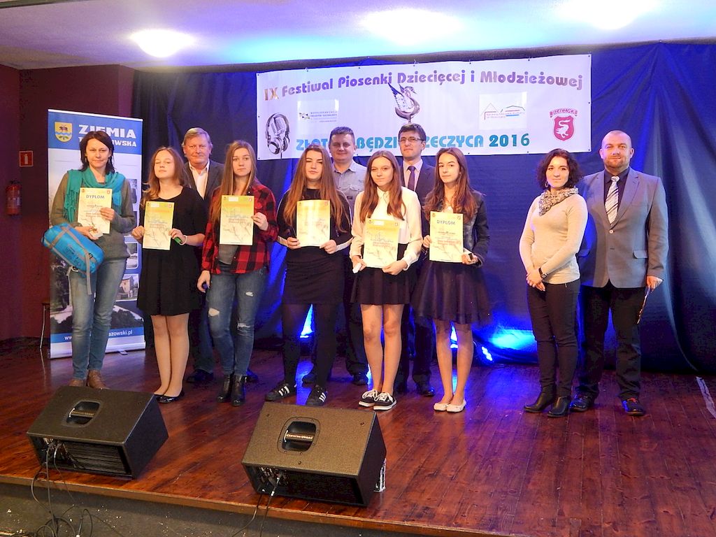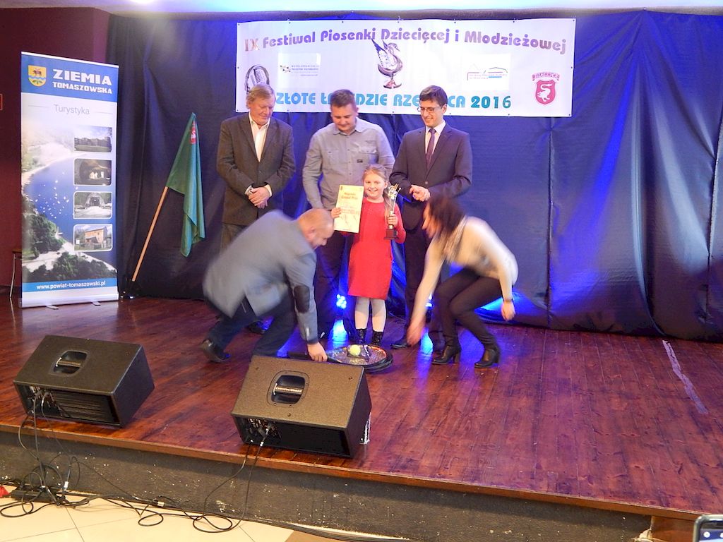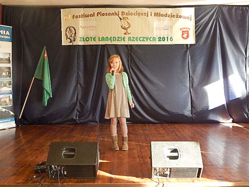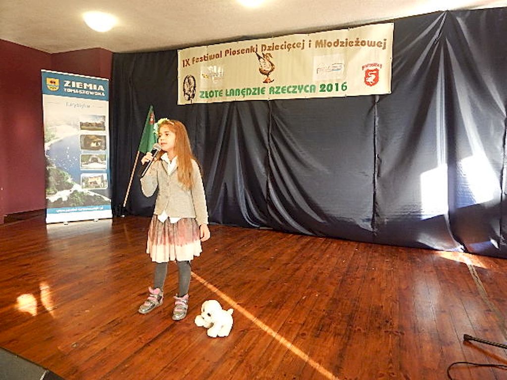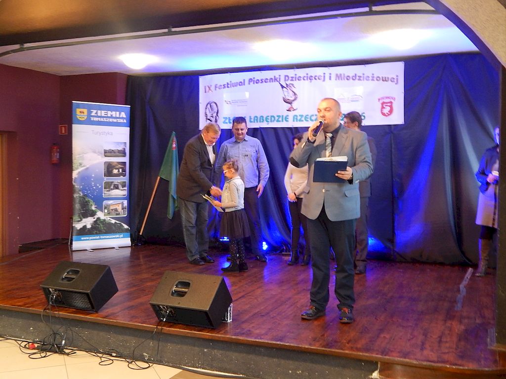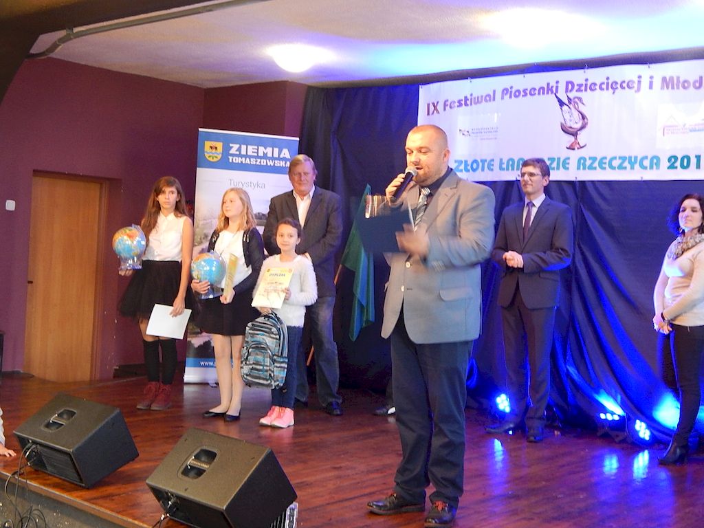 W piątkowy poranek 4 listopada 2016r, Rzeczyca znów stała się stolicą dziecięcej i młodzieżowej piosenki w regionie. Na tegoroczny IX Festiwal Piosenki Dziecięcej i Młodzieżowej Złote Łabędzie Rzeczyca 2016, napłynęły zgłoszenia uczestników z ośmiu powiatów: tomaszowskiego, opoczyńskiego, rawskiego, bełchatowskiego, brzezińskiego, piotrkowskiego, łowickiego oraz grójeckiego. Patronatem Honorowym rzeczyckie święto piosenki objęli Starosta Powiatu Tomaszowskiego Mirosław Kukliński oraz Wójt Gminy Rzeczyca Marek Kaźmierczyk. Impreza odbyła się w ramach Współorganizacji projektów kulturalnych na terenie województwa łódzkiego. Przesłuchania konkursowe miały miejsce w sali widowiskowej Ochotniczej Straży Pożarnej w Rzeczycy. Oficjalnego otwarcia dokonała Zastępca Wójta Gminy Rzeczyca Iwona Łuszcz Krawczyk, życząc młodym wykonawcom udanych prezentacji i zdobycia nowych cennych doświadczeń. Wyraziła również podziękowanie pracownikom GOK-u za coroczne organizowanie Festiwalu. Imprezę prowadzili Dyrektor GOK-u w Rzeczycy Jacek Zakrzewski oraz Karolina Walczyk. Rywalizację o statuetkę Złotego Łabędzia podjęli młodzi wokaliści z Domaniewic k/Łowicza, Drzewicy, Jeżowa, Kleszczowa, Luboczy, Niewiadowa, Opoczna, Rawy Mazowieckiej, Rzeczycy, Sadykierza, Tomaszowa Mazowieckiego oraz Trzepnicy. Przewodniczącą tegorocznego Jury była Marta Markowska z Działu Animacji, Rozwoju i Udostępniania Kultury i Sztuki Łódzkiego Domu Kultury. Wraz z nią oceny uczestników pojęli się Mirosław Murgrabia -muzyk, kapelmistrz, kierownik artystyczny zespołów wokalnych ze Skierniewic oraz Krzysztof Turała- wieloletni nauczyciel śpiewu, kierownik artystyczny wielu zespołów wokalnych i folklorystycznych z Łodzi. Uczestnicy rywalizowali w czterech kategoriach wiekowych prezentując po jednym utworze. Prezentowany repertuar był bardzo zróżnicowany, od piosenki popularnej poprzez piosenkę poetycką po nowatorskie aranżacje utworów folkowych. Komisja podkreślała podnoszący się z roku na rok poziom wykonywanych utworów. Nowością tegorocznego Festiwalu były warsztaty „Praca z mikrofonem", które przeprowadził wokalista a zarazem akustyk z dużym doświadczeniem scenicznym Michał Kołodziejski z Kielc. GRAND PRIX Festiwalu –statuetkę Złotego Łabędzia wyśpiewała Agata Siedlecka z Miejskiego Domu Kultury w Opocznie. Rywalizowała w kategorii klas 0-III szkoły podstawowej. Jej instruktorem jest Izabela Czapla a zaśpiewała piosenkę pod tytułem „Róża i jeż" Jarosława Piątkowskiego do słów Elżbiety Buczyńskiej. W kategorii szkoły podstawowe klasy 0-III zwyciężyła Gabriela Wasiak z Rzeczycy, w kategorii szkoły podstawowe klasy IV-VI laureatką pierwszej nagrody została Zuzanna Walkiewicz z Opoczna. W kategoriach starszych jury pierwsze miejsce przyznało Mai Korzeniowskiej z Niewiadowa – gimnazjum oraz Marcie Łyda z Opoczna – kategoria młodzież szkół średnich. Podczas obrad Jury swoje umiejętności zaprezentowały Zespoły Taneczne działające w GOK-u w Rzeczycy: Zespół Migotki, Zespół Wybryk oraz Zespół Twist. Ich prezentacje przygotowane przez instruktorkę Karolinę Walczyk zostały nagrodzone gromkimi brawami. Wręczając ufundowane statuetki Złotego Łabędzia, laureatom gratulował Wójt Gminy Rzeczyca Marek Kaźmierczyk, podkreślając możliwość zdobycia doświadczenia na deskach rzeczyckiej sceny. Dyplomy i nagrody rzeczowe wręczali Jacek Zakrzewski Dyrektor GOK-u w Rzeczycy oraz Marta Markowska z Łódzkiego Domu Kultury. Nagrody ufundowali: Gmina Rzeczyca oraz Powiat Tomaszowski. Ponadto Festiwal uzyskał dofinansowanie z Łódzkiego Domu Kultury. Lista laureatów Festiwalu Złote Łabędzie Rzeczyca 2016 Kategoria wiekowa szkoły podstawowe klasy 0-III