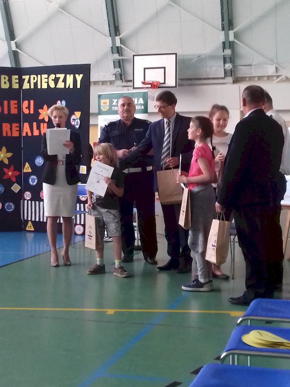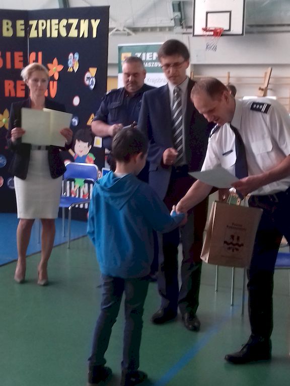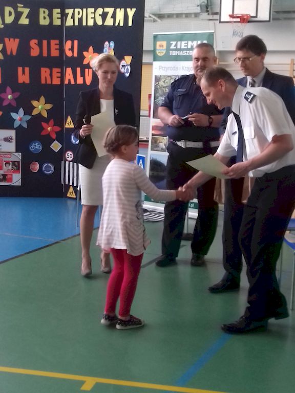 Początek dnia rozpoczęto apelem, na którym uczniowie zostali zapoznani z harmonogramem dnia oraz poznali hasło przewodnie. Po czym uczniowie startowali z różnymi konkursami. Jako pierwszy odbył się konkurs autorskich małych form teatralnych. Uczniowie przedstawiali scenki związane z bezpieczeństwem na drodze i w sieci. Komisja konkursowa w składzie Pani Wójt Iwony Łuszcz- Krawczyk, Naczelnika Wydziału Ruchu Drogowego Rafała Goszczyńskigo i pani Dyrektor Szkoły Podstawowej w Rzeczycy Małgorzaty Sobolewskiej- Gdak. Komisja miała bardzo trudne zadanie w podjęciu decyzji jednak po długich naradach zdecydowała, że miejsce: I zajęli uczniowi z klasy V gr. 2 z PSP Rzeczyca II miejsce klasa VI Filia Lubocz III miejsce klasa VI Filia Sadykierz Szkoła Podstawowa w Rzeczycy od lat współpracuje z Komendą Powiatową w Tomaszowie Mazowieckim i stale przeprowadza szereg pogadanek profilaktycznych związanych z szeroko pojętym bezpieczeństwie min. zagrożeniem internetowym. Uczniowie z naszej szkoły, podczas konkursu małych form teatralnych byli tak wspaniali w odgrywaniu swoich ról, że postanowiliśmy nagrać filmiki profilaktyczne, aby wykorzystywać je podczas działań profilaktycznych Komendy Powiatowej w Tomaszowie Mazowieckim. Kolejną konkurencjom był konkurs 1 z 10. W kategorii I-III wygrała Julia Socha, natomiast w kategorii IV- VI Wojciech Wasiak. Podsumowaniem pierwszej części dnia było rozstrzygnięcie konkursu plastycznego pt.„Zostań bohaterem na drodze". Uczniowie otrzymali nagrody ufundowane przez Starostwo Powiatowe w Tomaszowie Mazowieckim, Zarząd Dróg Powiatowych w Tomaszowie Mazowieckim, Wójt Gminy Rzeczyca Marek Kaźmierczyk, Dyrektor Szkoły Podstawowej Małgorzatę Sobolewską- Gdak. W dalszej części dnia wszyscy zgromadzeni wyszli na plac zabaw na czele z panem Wójtem Gminy Rzeczycy Markiem Kaźmierczykiem, panią Wójt Iwoną Łuszcz- Krawczyk, panią Dyrektor Szkoły Podstawowej w Rzeczycy Małgorzatą Sobolewską - Gdak, Przewodniczącym Rady Gminy Leszkiem Kosiackim i Radnymi Gminy Rzeczycy, zostało otwarte Miasteczko Ruchu Drogowego. Kolejnym elementem było zdawanie karty rowerowej przez uczniów klasy IV. Na zakończenie wspaniałego dnia uczniowie mieli okazję bliżej przyjrzeć się pojazdom uprzywilejowanym. Uczniowie zadowoleni a zarazem zmęczeni zakończyli radośnie pierwszy dzień bezpieczeństwa.