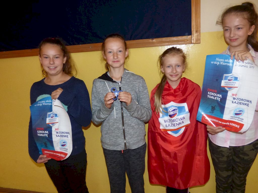 Po pierwsze, wzięcie przez szkołę udziału w programie daje szansę pogłębienia świadomości uczniów w zakresie higieny. Każda szkoła, która przystąpi do programu, otrzyma bowiem dedykowane materiały edukacyjne wraz ze scenariuszami lekcji. Są one przygotowane w taki sposób, aby można było z nich korzystać na lekcjach wychowawczych dla dzieci w każdej klasie szkoły podstawowej. Po drugie, każda zarejestrowana szkoła weźmie udział w konkursie, w którym nagrodą główną będzie wsparcie finansowe w wysokości 30 000 zł na remont szkolnej łazienki. Aby szkoła mogła otrzymać materiały edukacyjne oraz starać się o nagrodę, którą jest sfinansowanie remontu szkolnej łazienki, musi zarejestrować się na stronie www.wzorowalazienka.pl. 1200 placówek, które zgłoszą się do programu jako pierwsze, otrzyma specjalne paczki powitalne. Rejestracji może dokonać dyrektor placówki lub inna osoba dorosła za jego zgodą, w okresie od 21 sierpnia 2017 r. do 30 listopada 2017 r. Głosowanie na zarejestrowane szkoły będzie możliwe od 11 września 2017 r. do 30 listopada 2017 r. Każdego dnia można oddać 1 głos z jednego adresu e-mail. Bardzo prosimy również do włączenia się wszystkich sieci naszych szkół PSP Rzeczyca, Filię w Sadykierzu oraz Gimnazjum w Rzeczycy. Szkoła może otrzymać dodatkowe punkty za rejestrację paragonu dokumentującego zakup środka czystości DOMESTOS. Każdy mieszkaniec może oddać na naszą szkołę głos i zarejestrować paragon z zakupem środka czystości DOMESTOS. Uczniowie, mogą również przynosić paragony do szkolnego SUPERBOHATERA CZYSTOŚCI ( ucznia zaangażowanego w pracę projektu) PSP Rzeczyca- Amelia Domagała, Filia Sadykierz- Patrycja Jankowska, Filia Lubocz- Agata Przyborek, Gimnazjum w Rzeczycy- Angelika Goska. Szkoły będą mogły zdobywać także dodatkowe punkty, biorąc udział w różnych aktywnościach związanych z tematem programu, na przykład edukacją w zakresie higieny. Szkoły z największą liczbą punktów będą miały szansę na remont szkolnej łazienki o wartości 30 000 zł. Dodatkowo 100 kolejnym placówkom zostanie przekazany roczny zapas produktów Domestos, które pomogą dbać o czystość i higienę w szkolnych toaletach. Regulamin programu oraz szczegółowe informacje dotyczące zasad przyznawania punktów znajdują się na www.wzorowalazienka.pl. Link do oddawania głosów https://www.wzorowalazienka.pl/galeria/3330 PROSIMY O GŁOSY Kierownik PSP Rzeczyca Filia Lubocz Agata Ewa Ostalska