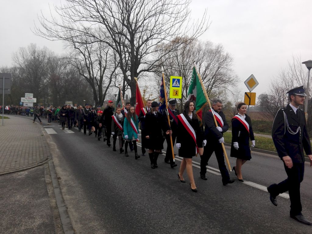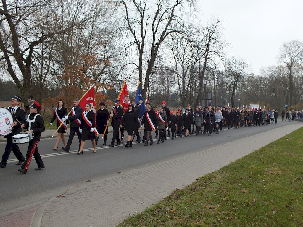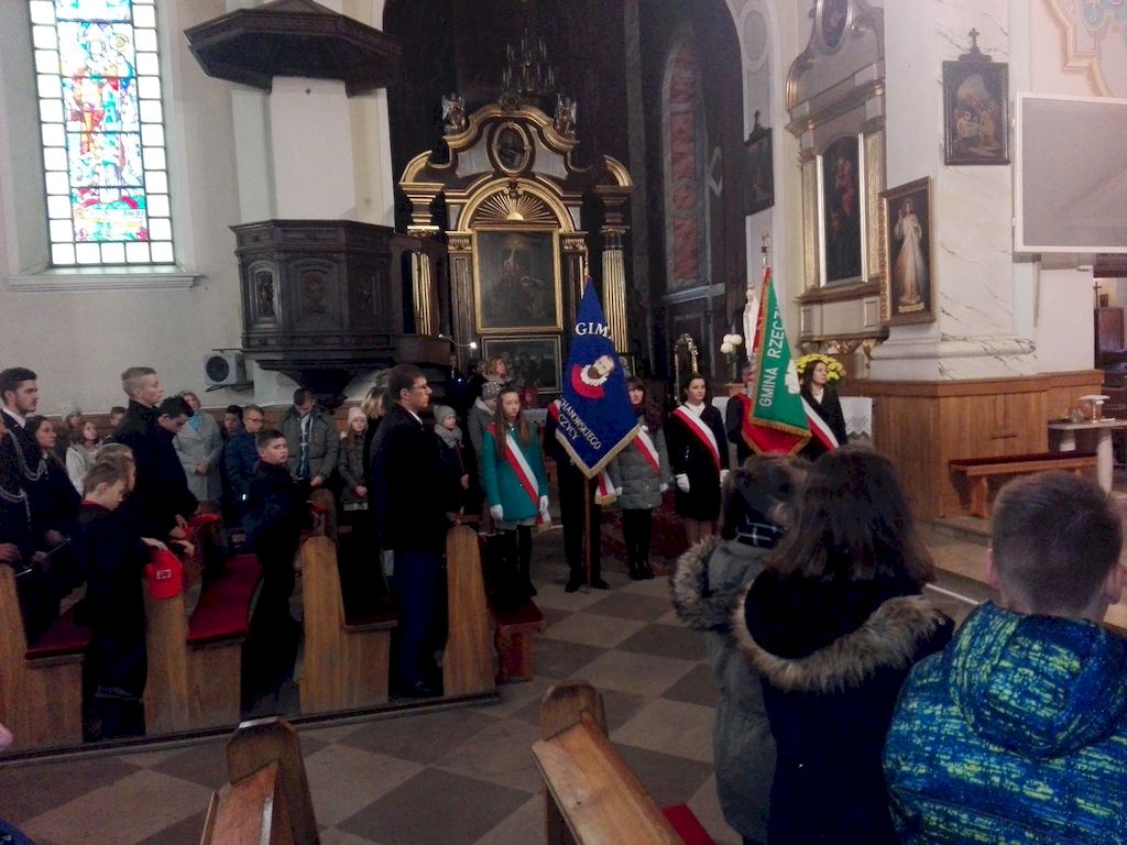 Odzyskanie niepodległości przez Polskę to złożony proces związany z szeregiem działań wojennych, dyplomatycznych i politycznych podczas I Wojny Światowej. Najważniejszym jest jednak fakt, że po ponad stu latach niewoli, była chęć dążenia do odbudowania Rzeczypospolitej. Była to zasługa kilku pokoleń Polaków którzy pielęgnowali pamięć o naszej Ojczyźnie. Gminne obchody Narodowego Dnia Niepodległości oraz 150 Rocznicy urodzin Józefa Piłsudskiego, rozpoczęły się akademią okolicznościową w której uczestniczyły poczty sztandarowe: Gminy Rzeczyca, OSP w Rzeczycy, Gimnazjum imienia Jana Kochanowskiego oraz Publicznej Szkoły Podstawowej imienia Narcyzy Żmichowskiej w Rzeczycy, władze gminy w osobach Wójta Marka Kaźmierczyka, Przewodniczącego Rady Gminy Leszka Kosiackiego, kierownictwo UG i jednostek podległych, strażacy i harcerze. Po odegraniu hymnu państwowego przez Orkiestrę Dętą Rzeczyca, głos zabrał Wójt Gminy Marek Kaźmierczyk. W swoim przemówieniu wskazywał konkretne przykłady poświęcenia dla Polski w obecnych czasach. Codzienna uczciwa praca i nauka, ale również zaangażowanie w działalność społeczną, w działalność w szeregach straży pożarnych, Młodzieżowej Drużyny Pożarniczej i Drużyny Harcerskiej, są dziś wydatnym wkładem w rozwój Polski. Przygotowany program artystyczny przybliżył okoliczności odzyskania niepodległości oraz związane z tym postacie historyczne. Akademię przygotowali uczniowie Szkoły Podstawowej w Rzeczycy pod kierunkiem Jadwigi Kowalczyk oraz Agnieszki Strawińskiej. Następnie wszyscy uczestnicy uroczystości przeszli do kościoła parafialnego na Mszę Świętą w intencji Ojczyzny, którą odprawił i kazanie wygłosił Ks. Wikariusz Marcin Koralewski. W liturgię włączyli się harcerze, muzycy z orkiestry oraz strażacy z MDP. Kolejna część uroczystości dobyła się przy obelisku przy Urzędzie Gminy od uroczystego podniesienia flagi państwowej przy dźwiękach hymnu. Komendant Gminny OSP w Rzeczycy odczytał Apel Pamięci, wspominając w nim postacie historyczne związane z odzyskaniem niepodległości oraz mieszkańców naszej gminy zaangażowanych w walkę i działalność na rzecz wyzwolenia Polski do powstania listopadowego do II Wojny Światowej. Następnie delegacje złożyły kwiaty pod obeliskiem upamiętniającym 36 mieszkańców Gminy Rzeczyca zamordowanych podczas II Wojny Światowej: Wójt Gminy wraz z Zastępcą Wójta oraz Skarbnikiem Gminy, Przewodniczący Rady Gminy z Radnymi, Dyrektor Gimnazjum, Dyrektor Szkoły Podstawowej oraz Kierownicy Szkół Filialnych wraz delegacjami samorządów szkolnych, strażacy, pracownicy Gminnego Ośrodka Kultury, Kierownik i pracownicy Gminnego Ośrodka Pomocy Społecznej oraz harcerze z rzeczyckiej Drużyny VICI. Strażacy z MDP oraz uczniowie gimnazjum zapalili znicze przy obelisku, przy którym wartę zaciągnęli harcerze a trębacz odegrał sygnał „Śpij kolego". Na zakończenie Orkiestra Dęta Rzeczyca, pod batutą Mirosława Murgrabi zagrała utwór „Szara piechota", który nierozerwalnie związany jest odzyskaniem niepodległości.