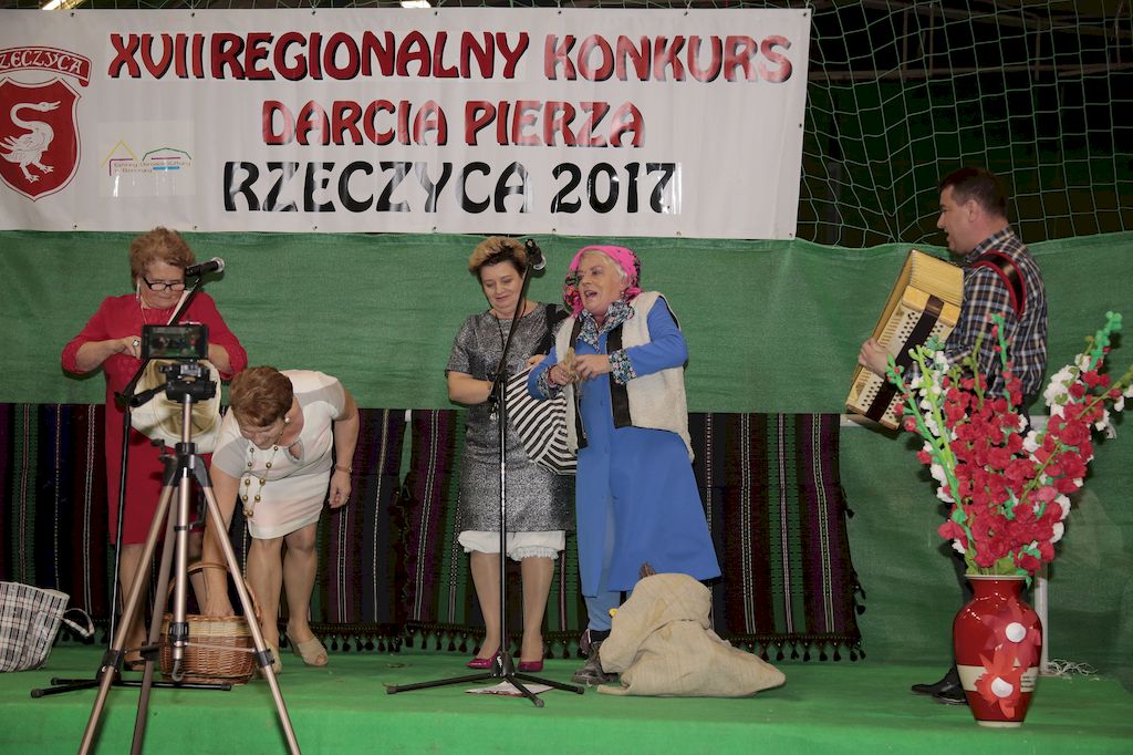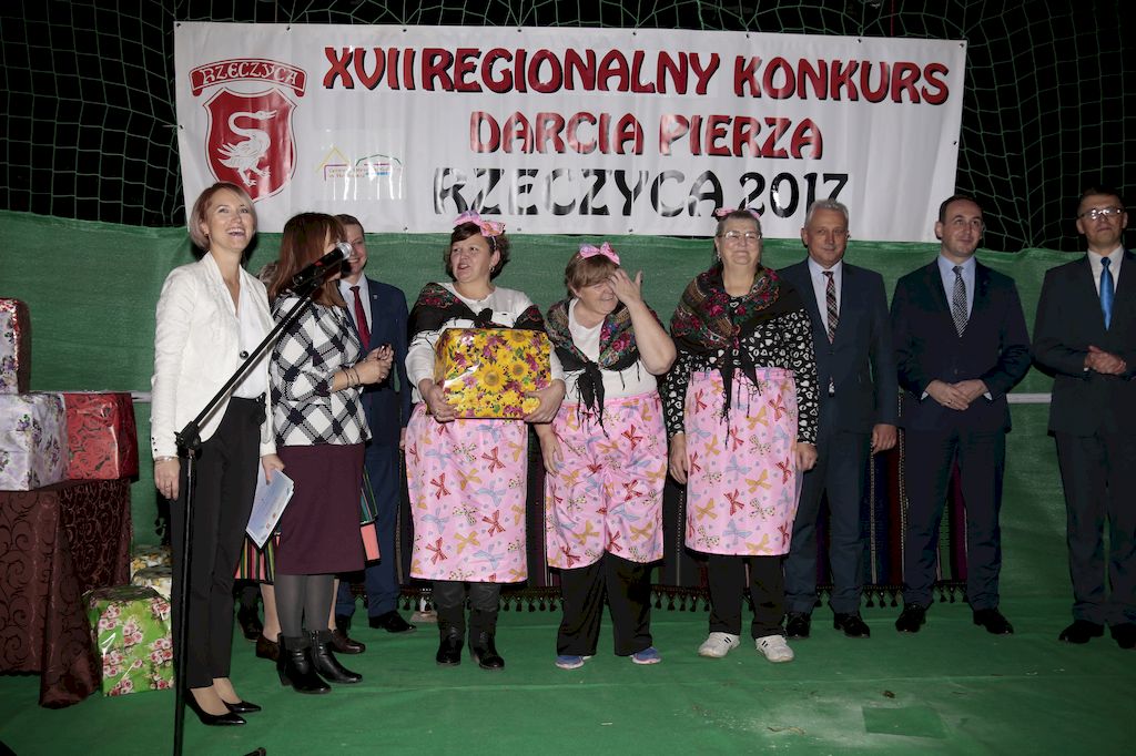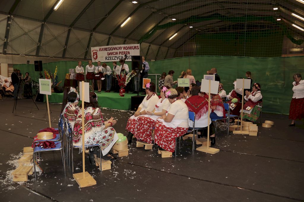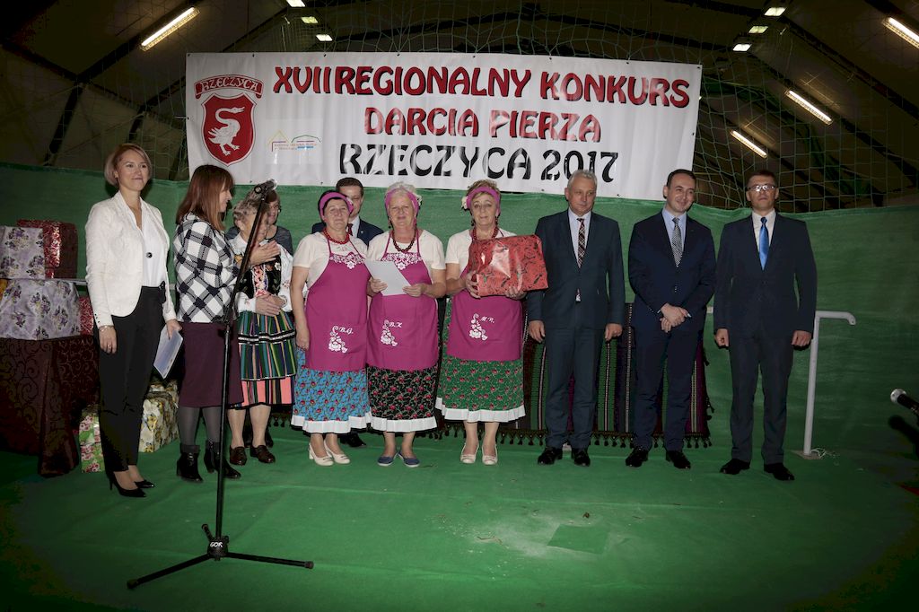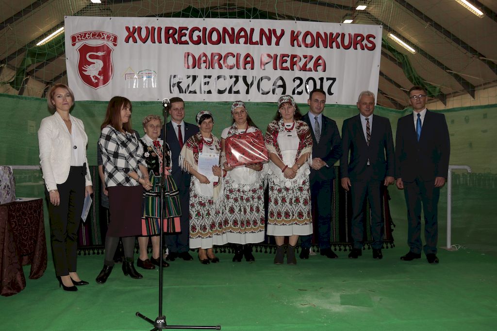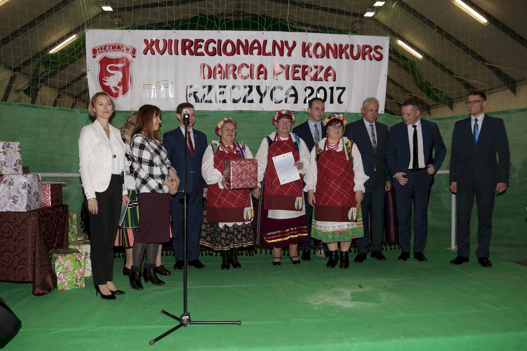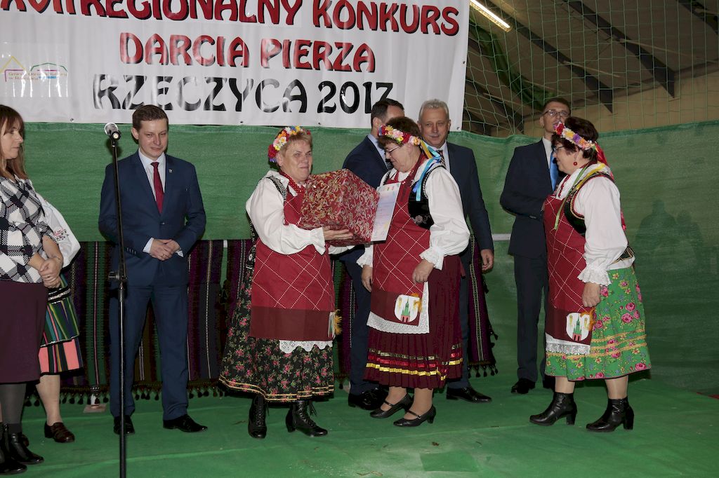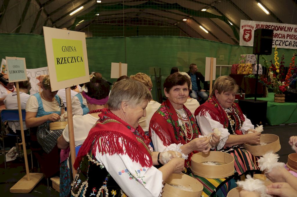 Tradycyjnie uczestników i gości naszej Pierzawki przywitała muzyka ludowa w wykonaniu Kapeli Gmajów. Konkurs otworzył oraz gości powitał Wójt Marek Kaźmierczyk. Komisję konkursową w składzie: Iwona Łuszcz Krawczyk Zastępca Wójta Gminy - Przewodnicząca, Bartłomiej Matysiak Członek Zarządu Powiatu Tomaszowskiego, Beata Ozga Flejszer Radna Sejmiku Województwa Łódzkiego, Marianna Pawlak twórczyni ludowa oraz Grażyna Kamińska z GOKu w Rzeczycy, przedstawił prowadzący imprezę, Dyrektor GOK-u Jacek Zakrzewski. Po ocenie jakości i wagi pierza zdartego podczas półtoragodzinnej rywalizacji, komisja najlepiej oceniła pracę reprezentacji Gminy Budziszewice i pierwsze miejsce przyznała drużynie Stowarzyszenia Kobiet Mierznianki z Mierzna. W konkursie rywalizowały drużyny: KGW z Nowin z gminy Bedków, KGW Wale z Gminy Czerniewice, KGW Brzustów z Gminy Inowłódz, KGW z Kochanowa z Gminy Lubochnia, KGW z Wąwału z Gminy Tomaszów Maz, KGW z Olszowej z Gminy Ujazd, KGW z Michałowa z Gminy Rokiciny, KGW z Bukowca z Gminy Żelechlinek, KGW z Wąglan z Gminy Białaczów, drużyna połączonych zespołów śpiewaczych: Bukowianki, Leśnianka oraz Stefanów z Gminy Brójce, KGW z Łęk Szlacheckich oraz KGW z Buczku z Gminy Poświętne. Gospodarzy- Gminę Rzeczyca reprezentowały Panie z KGW Glina Teresa Gmaj, Jadwiga Sobolewska oraz Bożena Dębicka. Po raz pierwszy Wójt Gminy Marek Kaźmierczyk zaprosił do darcia na specjalnie przygotowanym stanowisku gości naszej Pierzawki. Tej, okazuje się niełatwej sztuki próbowali miedzy innymi Marszałek Województwa Łódzkiego Dariusz Klimczak, starostowie, radni, wójtowie, przedstawiciele urzędów i zaprzyjaźnionych instytucji. Podczas darcia pierza widzowie mieli okazję zobaczyć występy Kapeli Gmajów, Kapeli Bobrowianie, Zespołu Ludowego Mali Rzeczycanie, Radosnej Grupy Folkowej Śliczny Zespół, posłuchać wywiadu z drużynami przeprowadzonego przez Kabaret Wcięci Przypadkiem oraz zobaczyć skecz w wykonaniu KGW z Wąglan. Tradycyjnie ze zdartego pierza wykonana zostanie poducha którą Wójt Gminy obdaruje pierwszego narodzonego w 2018 roku mieszkańca naszej gminy. Po wręczeniu nagród praz gospodarzy imprezy Starostę Mirosława Kuklińskiego oraz Wójta Marka Kaźmierczyka, Przewodniczącą Komisji Iwonę Łuszcz Krawczyk w towarzystwie Marszałka Dariusza Klimczaka, goście oraz mieszkańcy zostali zaproszeni na poczęstunek. Do późnych godzin nocnych uczestników bawił zespół Qattro z Inowłodza.