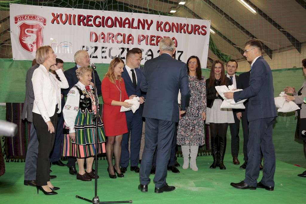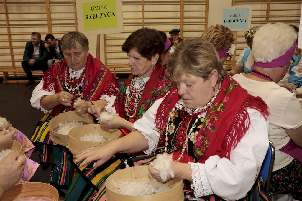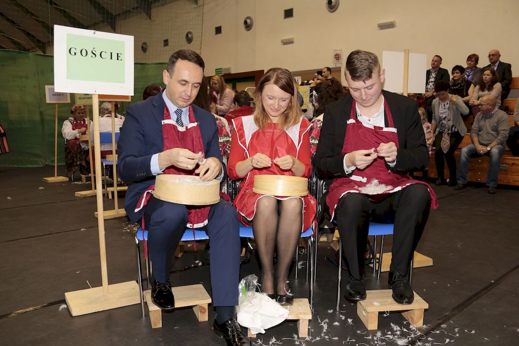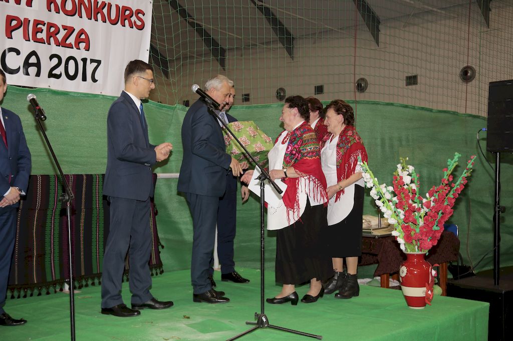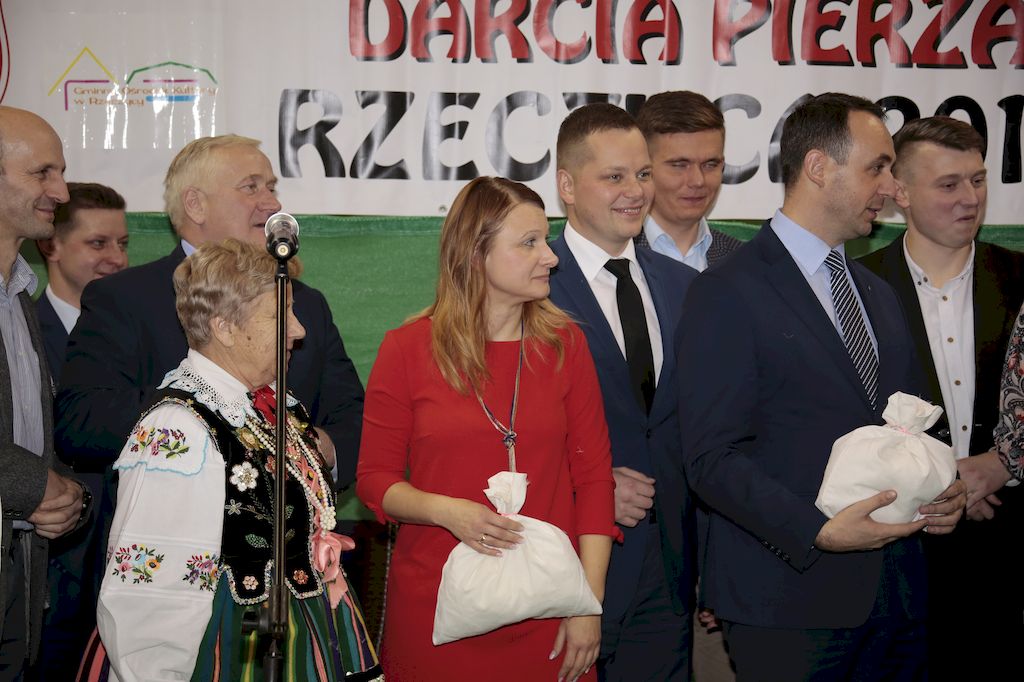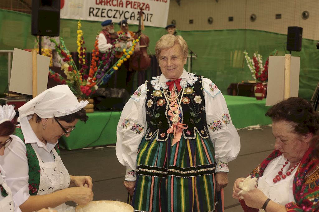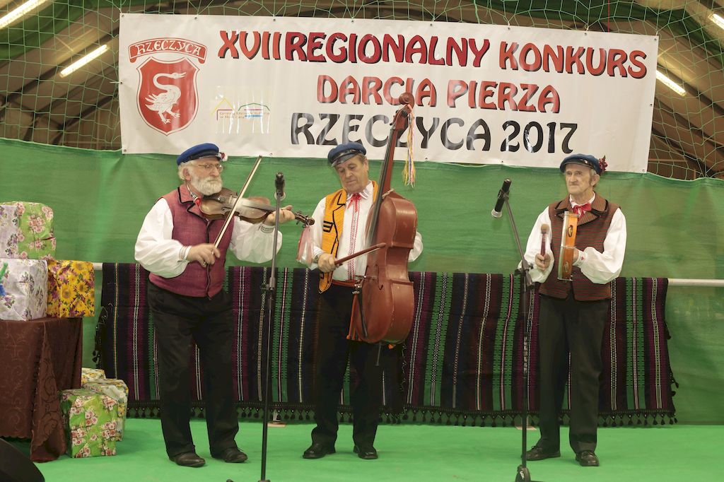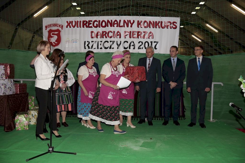 Tradycyjnie uczestników i gości naszej Pierzawki przywitała muzyka ludowa w wykonaniu Kapeli Gmajów. Konkurs otworzył oraz gości powitał Wójt Marek Kaźmierczyk. Komisję konkursową w składzie: Iwona Łuszcz Krawczyk Zastępca Wójta Gminy - Przewodnicząca, Bartłomiej Matysiak Członek Zarządu Powiatu Tomaszowskiego, Beata Ozga Flejszer Radna Sejmiku Województwa Łódzkiego, Marianna Pawlak twórczyni ludowa oraz Grażyna Kamińska z GOKu w Rzeczycy, przedstawił prowadzący imprezę, Dyrektor GOK-u Jacek Zakrzewski. Po ocenie jakości i wagi pierza zdartego podczas półtoragodzinnej rywalizacji, komisja najlepiej oceniła pracę reprezentacji Gminy Budziszewice i pierwsze miejsce przyznała drużynie Stowarzyszenia Kobiet Mierznianki z Mierzna. W konkursie rywalizowały drużyny: KGW z Nowin z gminy Bedków, KGW Wale z Gminy Czerniewice, KGW Brzustów z Gminy Inowłódz, KGW z Kochanowa z Gminy Lubochnia, KGW z Wąwału z Gminy Tomaszów Maz, KGW z Olszowej z Gminy Ujazd, KGW z Michałowa z Gminy Rokiciny, KGW z Bukowca z Gminy Żelechlinek, KGW z Wąglan z Gminy Białaczów, drużyna połączonych zespołów śpiewaczych: Bukowianki, Leśnianka oraz Stefanów z Gminy Brójce, KGW z Łęk Szlacheckich oraz KGW z Buczku z Gminy Poświętne. Gospodarzy- Gminę Rzeczyca reprezentowały Panie z KGW Glina Teresa Gmaj, Jadwiga Sobolewska oraz Bożena Dębicka. Po raz pierwszy Wójt Gminy Marek Kaźmierczyk zaprosił do darcia na specjalnie przygotowanym stanowisku gości naszej Pierzawki. Tej, okazuje się niełatwej sztuki próbowali miedzy innymi Marszałek Województwa Łódzkiego Dariusz Klimczak, starostowie, radni, wójtowie, przedstawiciele urzędów i zaprzyjaźnionych instytucji. Podczas darcia pierza widzowie mieli okazję zobaczyć występy Kapeli Gmajów, Kapeli Bobrowianie, Zespołu Ludowego Mali Rzeczycanie, Radosnej Grupy Folkowej Śliczny Zespół, posłuchać wywiadu z drużynami przeprowadzonego przez Kabaret Wcięci Przypadkiem oraz zobaczyć skecz w wykonaniu KGW z Wąglan. Tradycyjnie ze zdartego pierza wykonana zostanie poducha którą Wójt Gminy obdaruje pierwszego narodzonego w 2018 roku mieszkańca naszej gminy. Po wręczeniu nagród praz gospodarzy imprezy Starostę Mirosława Kuklińskiego oraz Wójta Marka Kaźmierczyka, Przewodniczącą Komisji Iwonę Łuszcz Krawczyk w towarzystwie Marszałka Dariusza Klimczaka, goście oraz mieszkańcy zostali zaproszeni na poczęstunek. Do późnych godzin nocnych uczestników bawił zespół Qattro z Inowłodza.