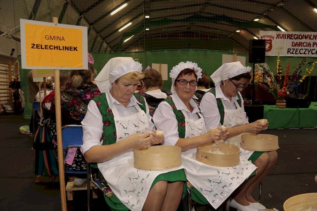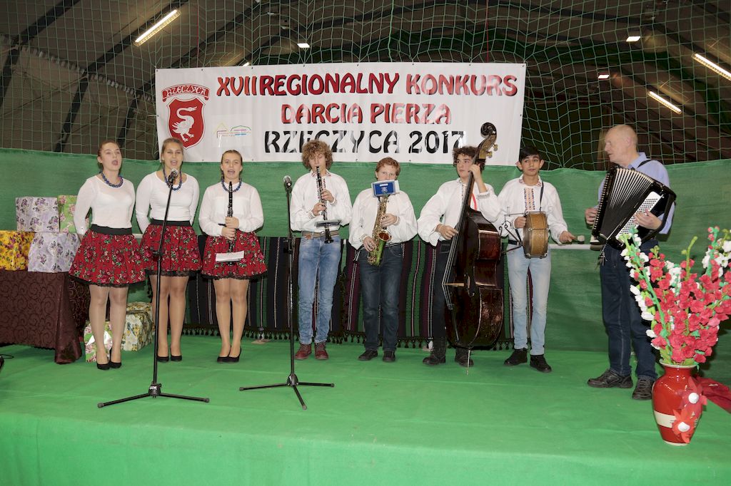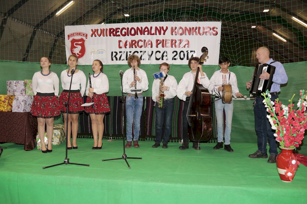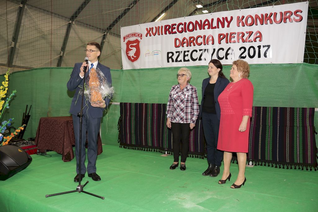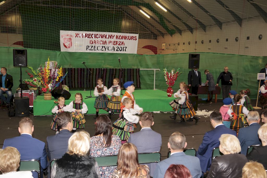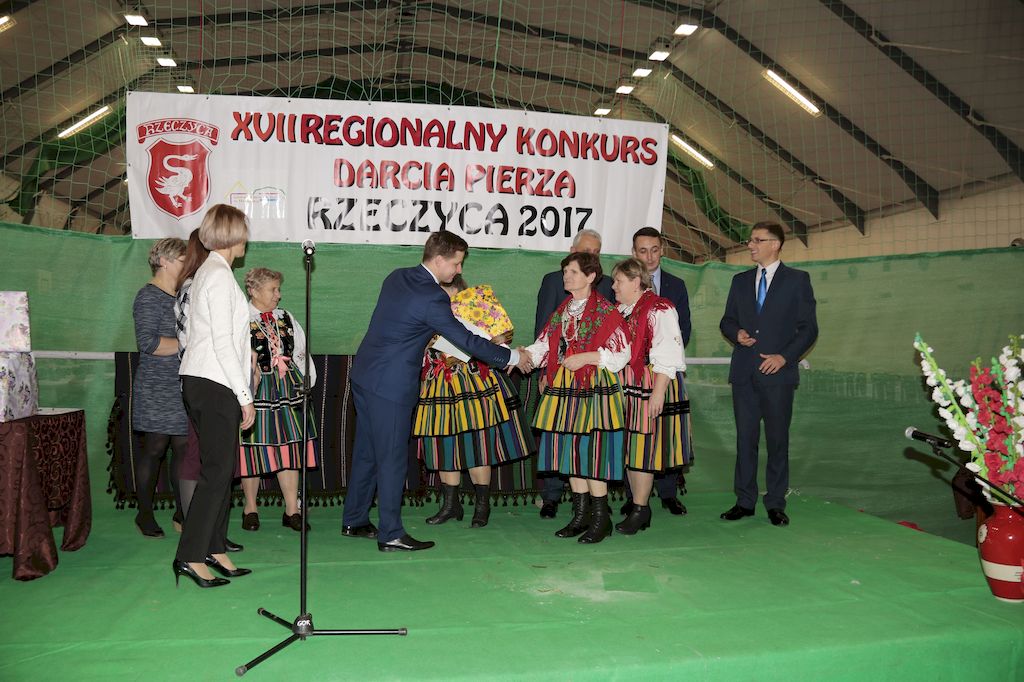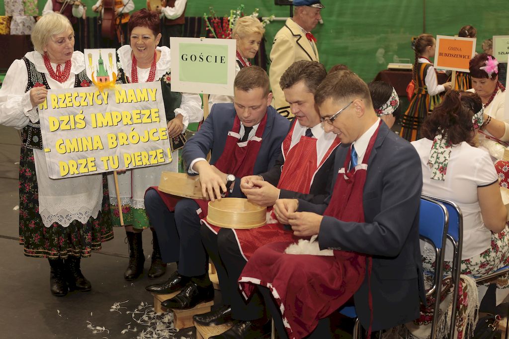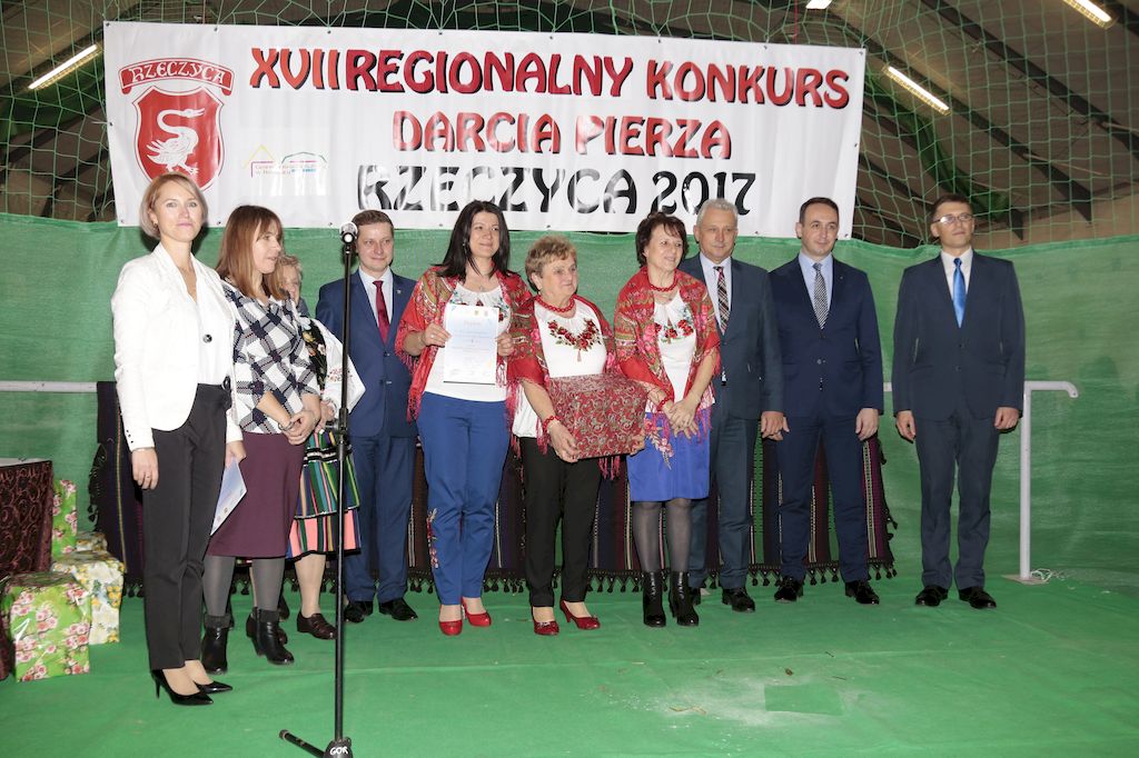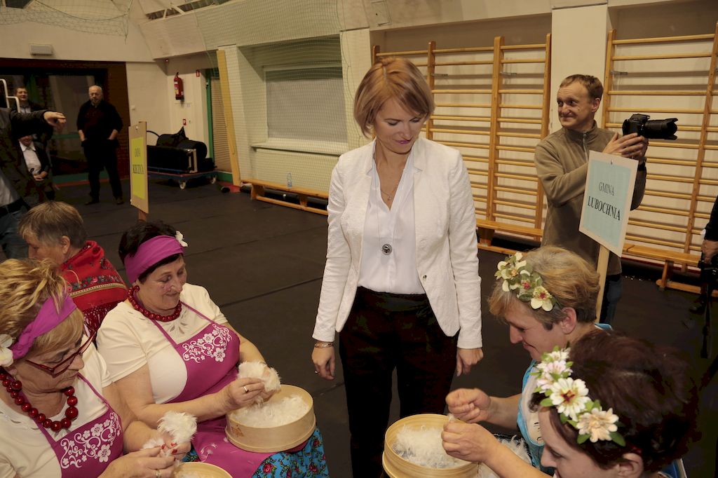 Tradycyjnie uczestników i gości naszej Pierzawki przywitała muzyka ludowa w wykonaniu Kapeli Gmajów. Konkurs otworzył oraz gości powitał Wójt Marek Kaźmierczyk. Komisję konkursową w składzie: Iwona Łuszcz Krawczyk Zastępca Wójta Gminy - Przewodnicząca, Bartłomiej Matysiak Członek Zarządu Powiatu Tomaszowskiego, Beata Ozga Flejszer Radna Sejmiku Województwa Łódzkiego, Marianna Pawlak twórczyni ludowa oraz Grażyna Kamińska z GOKu w Rzeczycy, przedstawił prowadzący imprezę, Dyrektor GOK-u Jacek Zakrzewski. Po ocenie jakości i wagi pierza zdartego podczas półtoragodzinnej rywalizacji, komisja najlepiej oceniła pracę reprezentacji Gminy Budziszewice i pierwsze miejsce przyznała drużynie Stowarzyszenia Kobiet Mierznianki z Mierzna. W konkursie rywalizowały drużyny: KGW z Nowin z gminy Bedków, KGW Wale z Gminy Czerniewice, KGW Brzustów z Gminy Inowłódz, KGW z Kochanowa z Gminy Lubochnia, KGW z Wąwału z Gminy Tomaszów Maz, KGW z Olszowej z Gminy Ujazd, KGW z Michałowa z Gminy Rokiciny, KGW z Bukowca z Gminy Żelechlinek, KGW z Wąglan z Gminy Białaczów, drużyna połączonych zespołów śpiewaczych: Bukowianki, Leśnianka oraz Stefanów z Gminy Brójce, KGW z Łęk Szlacheckich oraz KGW z Buczku z Gminy Poświętne. Gospodarzy- Gminę Rzeczyca reprezentowały Panie z KGW Glina Teresa Gmaj, Jadwiga Sobolewska oraz Bożena Dębicka. Po raz pierwszy Wójt Gminy Marek Kaźmierczyk zaprosił do darcia na specjalnie przygotowanym stanowisku gości naszej Pierzawki. Tej, okazuje się niełatwej sztuki próbowali miedzy innymi Marszałek Województwa Łódzkiego Dariusz Klimczak, starostowie, radni, wójtowie, przedstawiciele urzędów i zaprzyjaźnionych instytucji. Podczas darcia pierza widzowie mieli okazję zobaczyć występy Kapeli Gmajów, Kapeli Bobrowianie, Zespołu Ludowego Mali Rzeczycanie, Radosnej Grupy Folkowej Śliczny Zespół, posłuchać wywiadu z drużynami przeprowadzonego przez Kabaret Wcięci Przypadkiem oraz zobaczyć skecz w wykonaniu KGW z Wąglan. Tradycyjnie ze zdartego pierza wykonana zostanie poducha którą Wójt Gminy obdaruje pierwszego narodzonego w 2018 roku mieszkańca naszej gminy. Po wręczeniu nagród praz gospodarzy imprezy Starostę Mirosława Kuklińskiego oraz Wójta Marka Kaźmierczyka, Przewodniczącą Komisji Iwonę Łuszcz Krawczyk w towarzystwie Marszałka Dariusza Klimczaka, goście oraz mieszkańcy zostali zaproszeni na poczęstunek. Do późnych godzin nocnych uczestników bawił zespół Qattro z Inowłodza.