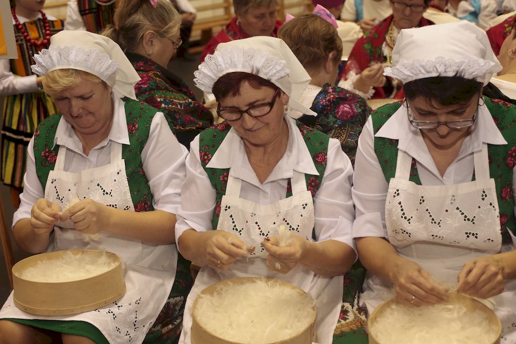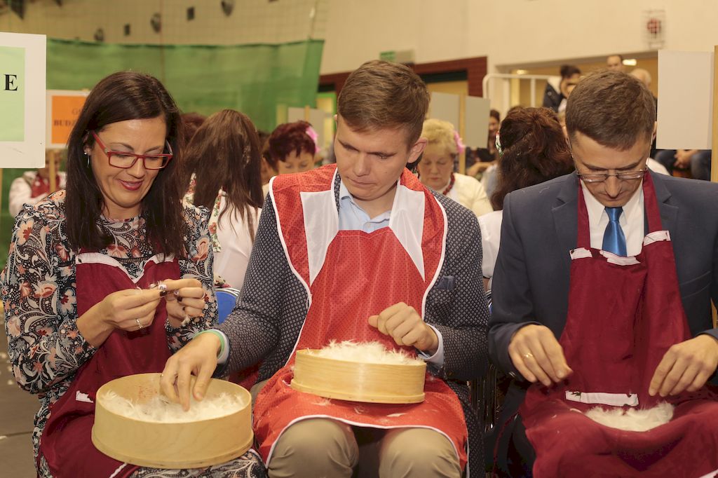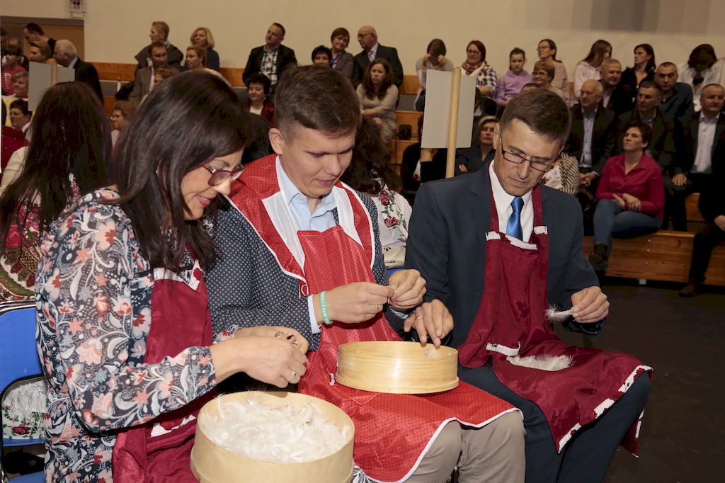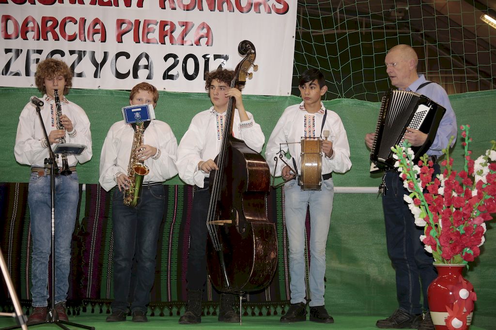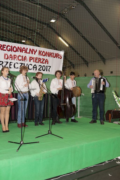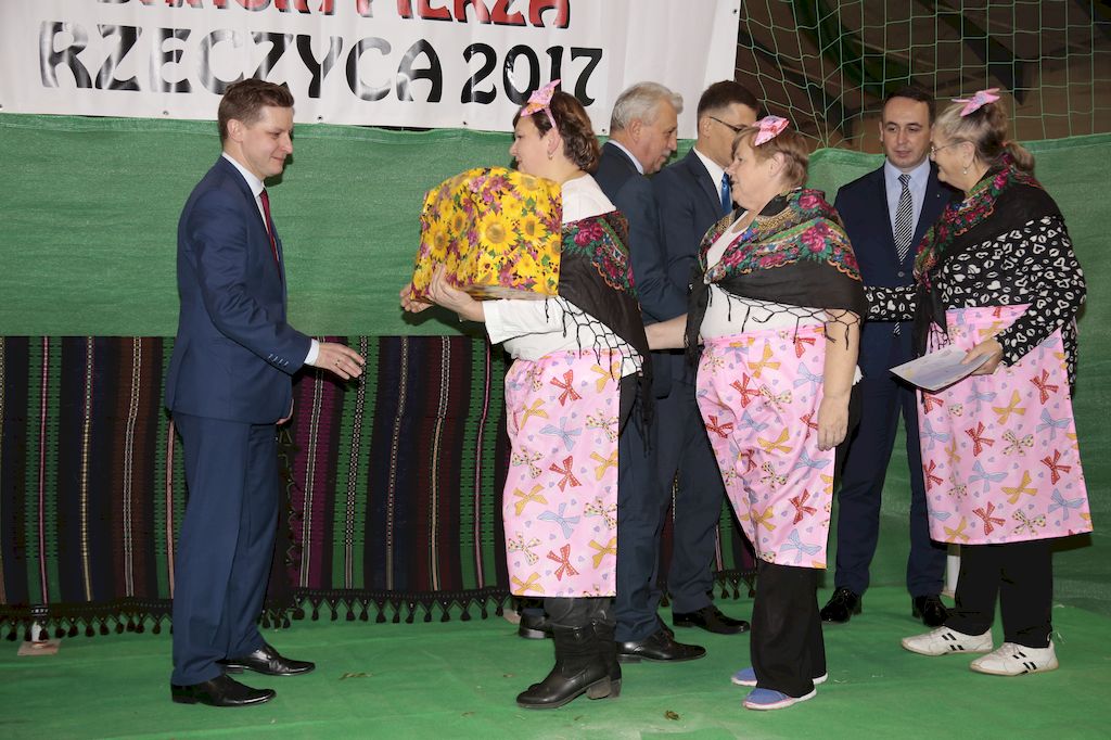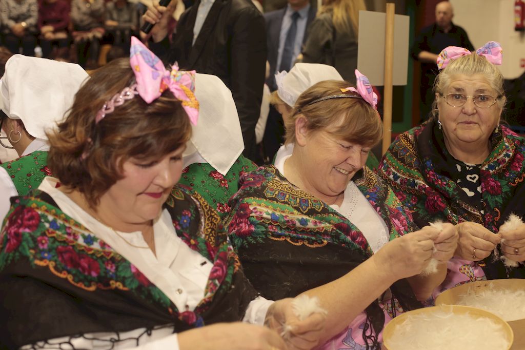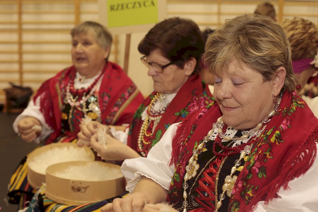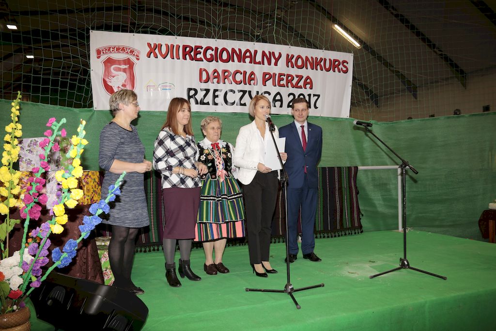 Tradycyjnie uczestników i gości naszej Pierzawki przywitała muzyka ludowa w wykonaniu Kapeli Gmajów. Konkurs otworzył oraz gości powitał Wójt Marek Kaźmierczyk. Komisję konkursową w składzie: Iwona Łuszcz Krawczyk Zastępca Wójta Gminy - Przewodnicząca, Bartłomiej Matysiak Członek Zarządu Powiatu Tomaszowskiego, Beata Ozga Flejszer Radna Sejmiku Województwa Łódzkiego, Marianna Pawlak twórczyni ludowa oraz Grażyna Kamińska z GOKu w Rzeczycy, przedstawił prowadzący imprezę, Dyrektor GOK-u Jacek Zakrzewski. Po ocenie jakości i wagi pierza zdartego podczas półtoragodzinnej rywalizacji, komisja najlepiej oceniła pracę reprezentacji Gminy Budziszewice i pierwsze miejsce przyznała drużynie Stowarzyszenia Kobiet Mierznianki z Mierzna. W konkursie rywalizowały drużyny: KGW z Nowin z gminy Bedków, KGW Wale z Gminy Czerniewice, KGW Brzustów z Gminy Inowłódz, KGW z Kochanowa z Gminy Lubochnia, KGW z Wąwału z Gminy Tomaszów Maz, KGW z Olszowej z Gminy Ujazd, KGW z Michałowa z Gminy Rokiciny, KGW z Bukowca z Gminy Żelechlinek, KGW z Wąglan z Gminy Białaczów, drużyna połączonych zespołów śpiewaczych: Bukowianki, Leśnianka oraz Stefanów z Gminy Brójce, KGW z Łęk Szlacheckich oraz KGW z Buczku z Gminy Poświętne. Gospodarzy- Gminę Rzeczyca reprezentowały Panie z KGW Glina Teresa Gmaj, Jadwiga Sobolewska oraz Bożena Dębicka. Po raz pierwszy Wójt Gminy Marek Kaźmierczyk zaprosił do darcia na specjalnie przygotowanym stanowisku gości naszej Pierzawki. Tej, okazuje się niełatwej sztuki próbowali miedzy innymi Marszałek Województwa Łódzkiego Dariusz Klimczak, starostowie, radni, wójtowie, przedstawiciele urzędów i zaprzyjaźnionych instytucji. Podczas darcia pierza widzowie mieli okazję zobaczyć występy Kapeli Gmajów, Kapeli Bobrowianie, Zespołu Ludowego Mali Rzeczycanie, Radosnej Grupy Folkowej Śliczny Zespół, posłuchać wywiadu z drużynami przeprowadzonego przez Kabaret Wcięci Przypadkiem oraz zobaczyć skecz w wykonaniu KGW z Wąglan. Tradycyjnie ze zdartego pierza wykonana zostanie poducha którą Wójt Gminy obdaruje pierwszego narodzonego w 2018 roku mieszkańca naszej gminy. Po wręczeniu nagród praz gospodarzy imprezy Starostę Mirosława Kuklińskiego oraz Wójta Marka Kaźmierczyka, Przewodniczącą Komisji Iwonę Łuszcz Krawczyk w towarzystwie Marszałka Dariusza Klimczaka, goście oraz mieszkańcy zostali zaproszeni na poczęstunek. Do późnych godzin nocnych uczestników bawił zespół Qattro z Inowłodza.