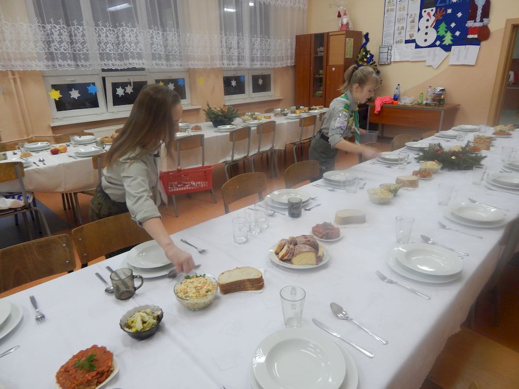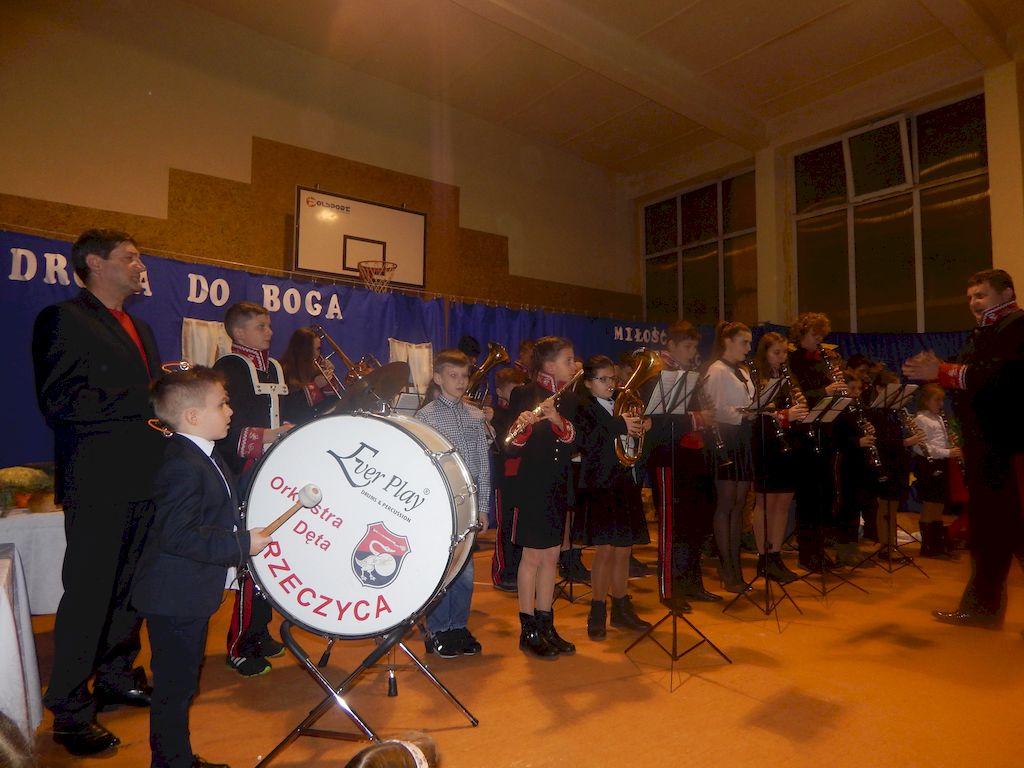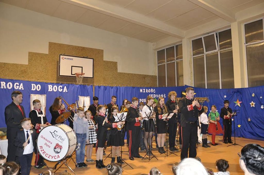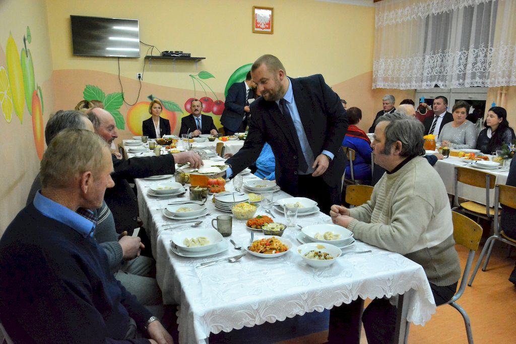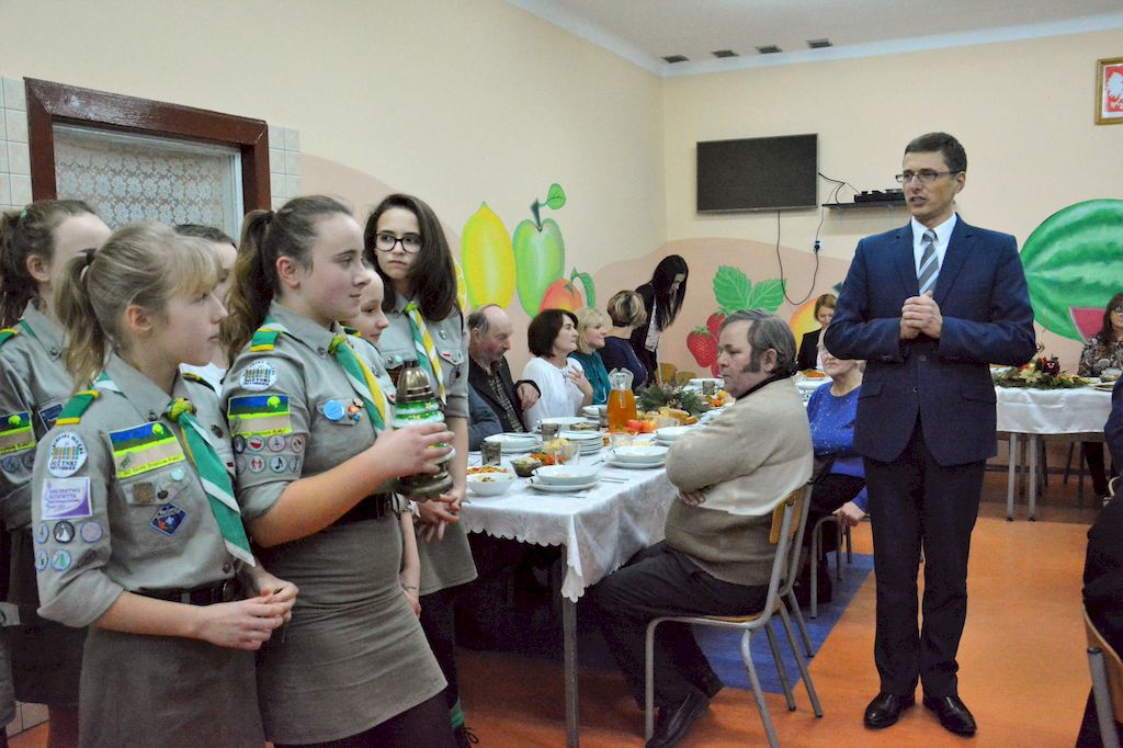 Kolacja Wigilijna z udziałem osób samotnych, starszych, potrzebujących opieki czy wsparcia odbywa się w naszej gminie już od kilku lat. Z inicjatywy wójta gminy, przy udziale wielu osób i wsparciu instytucji co roku udaje się zorganizować spotkanie w niecodziennej atmosferze dla ponad 80 osób. Gospodarzami spotkania byli Wójt Marek Kaźmierczyk oraz Przewodniczący Rady Gminy Leszek Kosiacki, natomiast wśród gości byli: Zastępca Wójta Iwona Łuszcz Krawczyk, Radni Aneta Podlasek, Katarzyna Kłopotowska, Skarbnik Gminy Grażyna Frączak, Dyrektor Gimnazjum Małgorzata Szczur, Dyrektor Szkoły Podstawowej Grażyna Kielan, Kierownik Szkoły Filialnej w Sadykierzu Bernardeta Grot, Dyrektor GOKu Jacek Zakrzewski oraz sołtysi z terenu Gminy. Wieczór rozpoczęły jasełka w wykonaniu młodzieży rzeczyckich szkół. Uczniowie VII klas przygotowywani przez Beatę Grzejszczyk przedstawili tradycyjne jasełka. Starsi koledzy i koleżanki z Gimnazjum, przygotowani przez Antoninę Karwat z pomocą Moniki Fau, zaprezentowali widowisko na temat laicyzacji świąt bożonarodzeniowych. Dzięki doskonale dobranym scenariuszom oraz świetnemu przygotowaniu i zaangażowaniu uczniów oba widowiska zrobiły na widzach duże wrażenie. W dalszej części prezentowały się zespoły działające w Gminnym Ośrodku Kultury. Orkiestra Dęta Rzeczyca pod batutą Mirosława Murgrabia wykonała tradycyjne polskie kolędy oraz dziecięcą pastorałkę. Zespoły taneczne Zygzak, Migotki oraz Twist, przygotowane przez Karolinę Walczyk zatańczyły a nawet zaśpiewały do świątecznych standardów. Wójt Gminy, zabierając głos gorąco podziękował dzieciom i młodzieży za prezentowane programy, natomiast nauczycielom i pracownikom GOKu za ich przygotowanie. Wspólna kolacja rozpoczęła się odczytaniem fragmentu Ewangelii Świętego Łukasza o narodzeniu Pana Jezusa. Pan Wójt złożył serdeczne życzenia obecnym przy stole, po czym wszyscy połamali się opłatkiem. Harcerze z Drużyny Vici z Rzeczycy przekazali Wójtowi Betlejemskie Światło Pokoju, które do świat będzie w Urzędzie Gminy. Wigilijne potrawy przygotowały Panie z Kół Gospodyń Wiejskich z Rzeczycy, Sadykierza, Grotowic, Brzegu i Gliny oraz pracownice GOK-u, ze środków przekazanych przez Gminną Komisję Rozwiazywania Problemów Alkoholowych.
