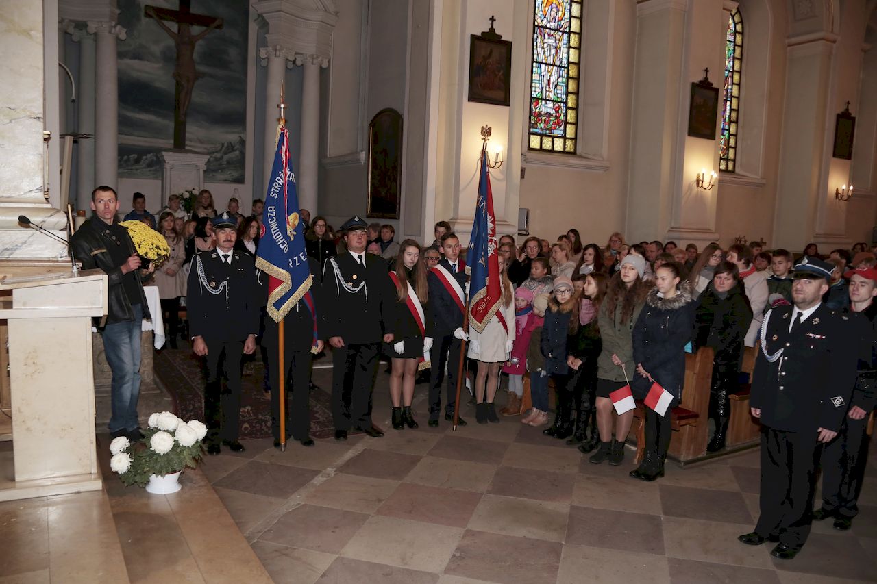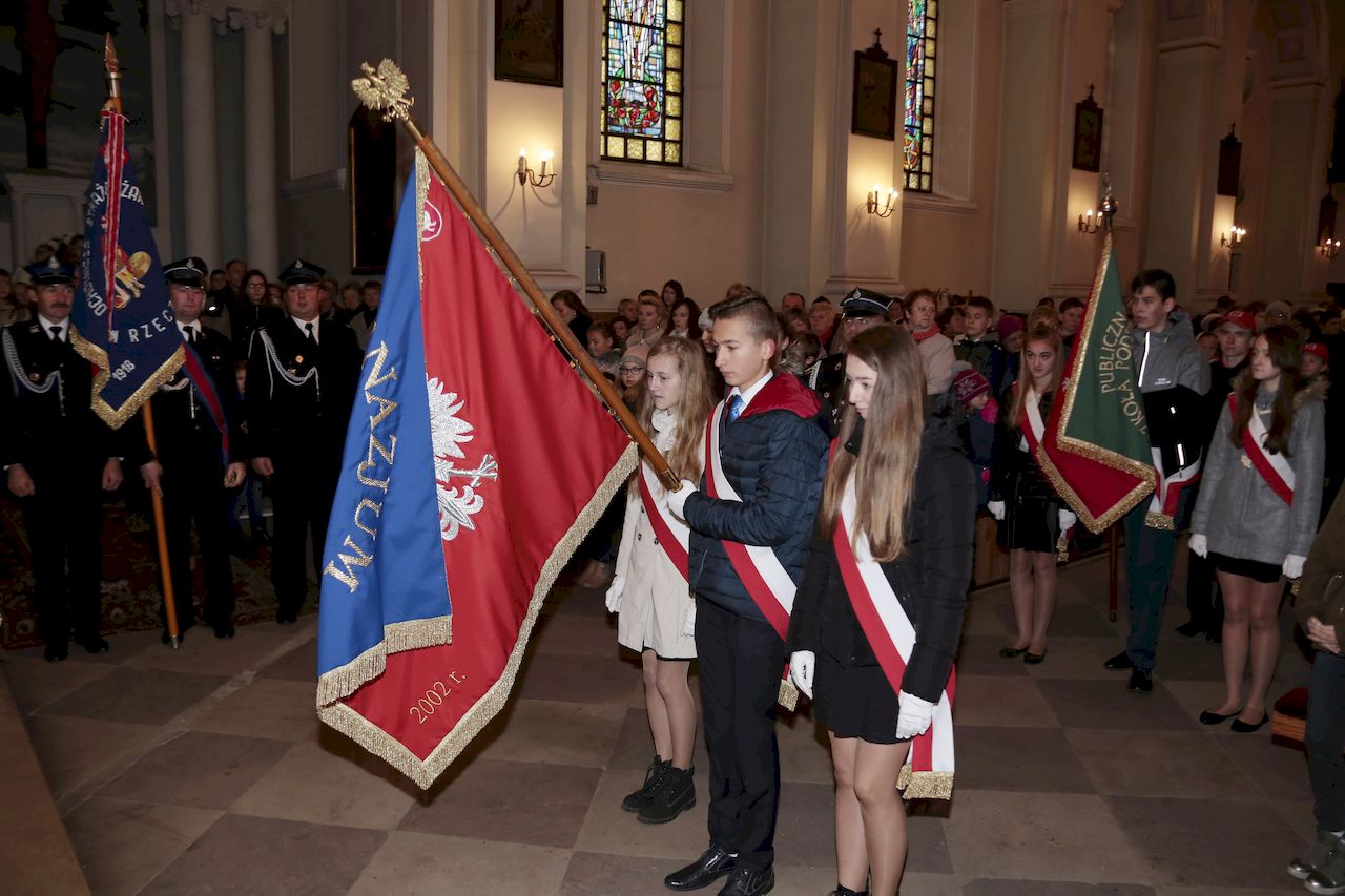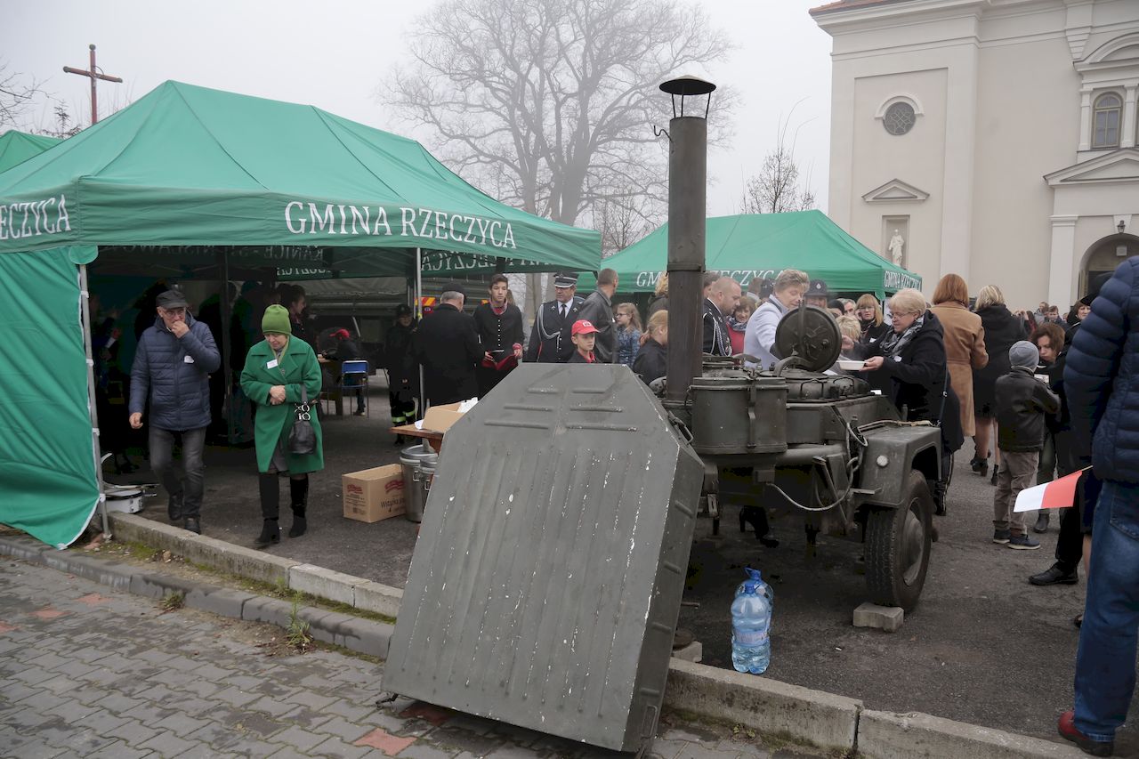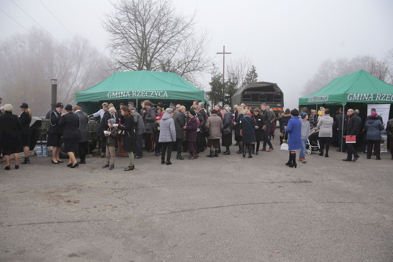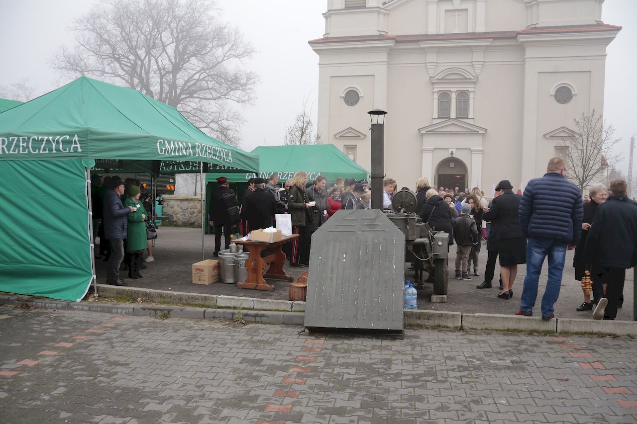 Uroczyste obchody rozpoczęły się w piątek 9 listopada we wszystkich placówkach oświatowych na terenie gminy. Akademie przygotowane prze uczniów oraz nauczycieli poszczególnych placówek,: poprzedziły wspólne odśpiewanie czterech zwrotek hymnu narodowego w ramach ogólnopolskiej akcji Ministerstwa Edukacji „ Rekord dla Niepodległej". W uroczystościach udział wzięli: Wójt Gminy Rzeczyca Marek Kaźmierczyk, Przewodniczący Rady Gminy Pan Leszek Kosiacki, Zastępca Wójta Pani Iwona Łuszcz-Krawczyk, Dyrektorka Szkoły Podstawowej Pani Grażyna Kielan, Dyrektorka Gimnazjum Pani Małgorzata Szczur, Wicedyrektorka Pani Aneta Machnicka, Kierowniczki szkół filialnych Pani Bernadeta Grot i Pani Agata Ostalska, Dyrektor GOK Pan Jacek Zakrzewski. Uczniowie, przedszkolaki, nauczyciele, pracownicy administracji i obsługi, goście oraz licznie przybyli rodzice równo o godzinie 11:11 wraz z 5 mln uczniów z całego kraju zaśpiewali „Mazurka Dąbrowskiego". W dniu 11 listopada przy obelisku upamiętniającym zamordowanie 36 mieszkańców naszej Gminy podczas II Wojny Światowej, przy którym wartę honorową zaciągnęli żołnierze 7 Batalionu Kawalerii Powietrznej z Tomaszowa Mazowieckiego, przy dźwiękach hymnu państwowego, poczet flagowy OSP dokonał uroczystego podniesienia flagi państwowej. Po odśpiewaniu hymnu nastąpiło odczytanie Niepodległościowego Apelu Pamięci, Dla uczczenia poległych w walkach za Ojczyznę, kwiaty przy obelisku złożyły delegacje Urzędu Gminy oraz jednostek podległych, Zarządu Oddziału Gminnego ZOSP RP, Drużyny Harcerskiej Vici, Gromady Zuchowej, Klubu Aktywności Społecznej oraz gminnej organizacji Polskiego Stronnictwa Ludowego. Następnie delegacja młodych strażaków zapaliła znicz oraz odegrano sygnał ,,Śpij kolego". Na zakończenie tej części obchodów, Wójt Gminy Marek Kaźmierczyk wygłosił okolicznościowe przemówienie. Następnie udano się do kościoła parafialnego, gdzie ks Proboszcz Henryk Linarcik odprawił uroczystą Maszę Świętą w intencji Ojczyzny. Po Mszy Świętej Chór Parafialny pod przewodnictwem Zbigniewa Laskowskiego dał koncert pieśni patriotycznych. Występ został bardzo gorąco przyjęty przez publiczność, a artyści otrzymali owację na stojąco. Po koncercie na uczestników uroczystości czekała gorąca grochówka przygotowana przez Panie z Koła Gospodyń Wiejskich Kierzanki z Sadykierza. Żołnierze z 7 Batalionu Kawalerii Powietrznej prezentowali podstawowe uzbrojenie i wyposażenie wojskowe. Wójt Gminy Rzeczyca składa serdeczne podziękowania wszystkim za udział w tym ważnym dla każdego Polaka Święcie.