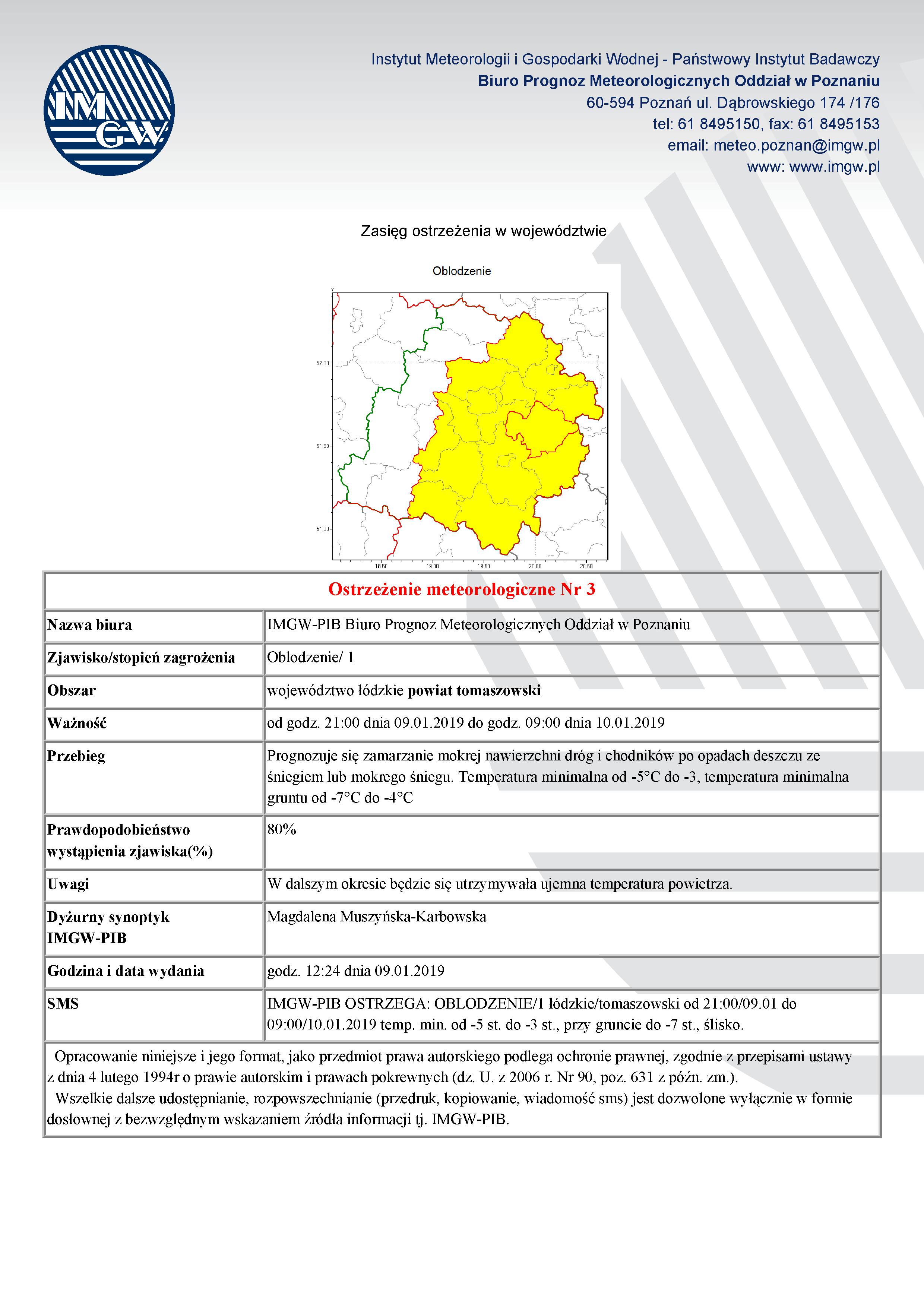 | Ostrzeżenie meteorologiczne dot. oblodzenia |