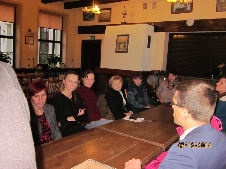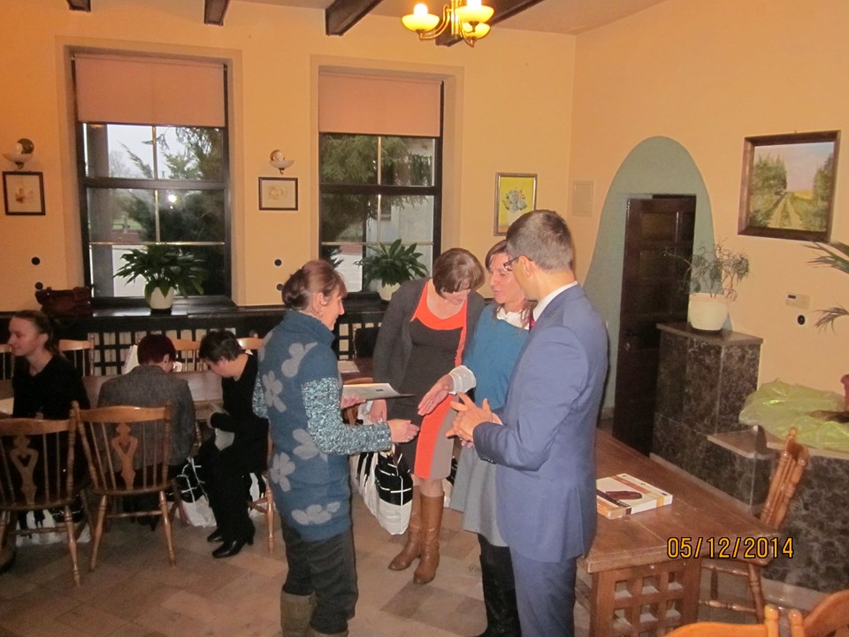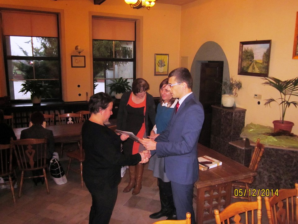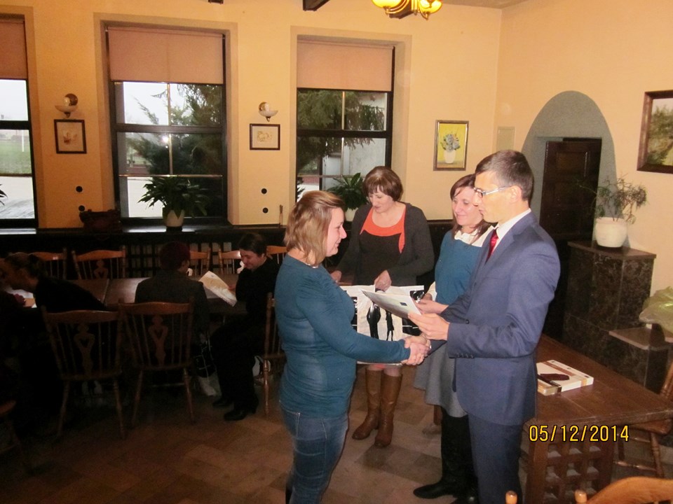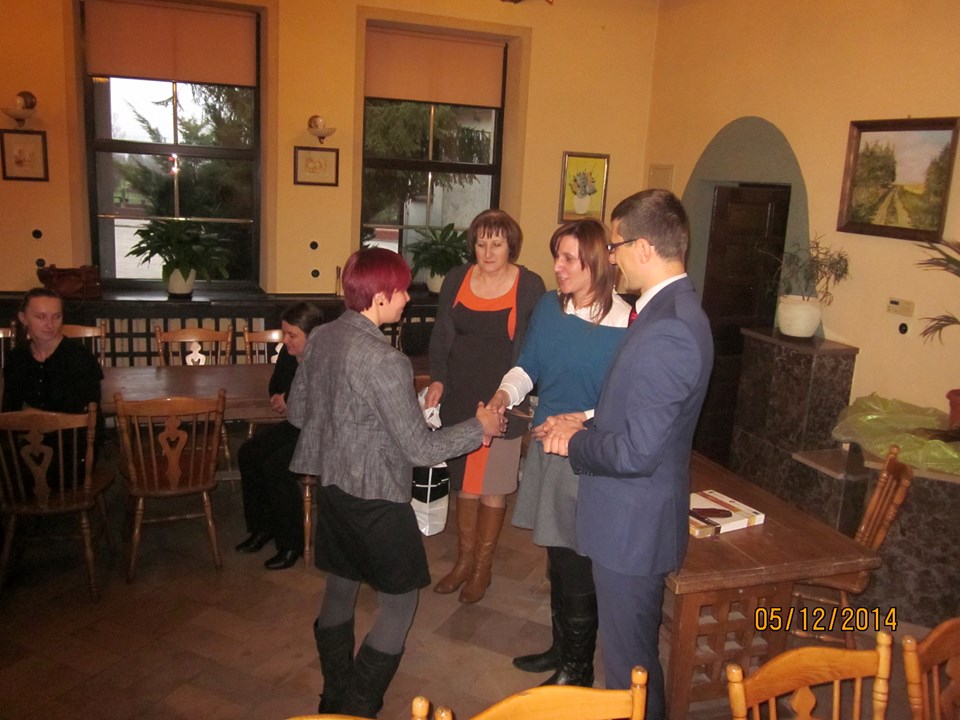 Wszystkich uczestników spotkania powitała Regina Sarwa – Kierownik GOPS w Rzeczycy – koordynator projektu, która podziękowała uczestnikom za udział w projekcie, za zaangażowanie i wytrwałość. Następnie głos zabrał Wójt Gminy Rzeczyca Marek Kaźmierczyk, który podkreślił, że uczestnictwo w projektach miękkich to nie tylko podniesienie kwalifikacji zawodowych uczestników ale także zmotywowanie do aktywnego poszukiwania pracy, zwiększenie pewność siebie, przygotowanie do zaprezentowania się podczas rozmowy kwalifikacyjnej z przyszłym pracodawcą. Ponadto zaznaczył, iż osiągnięte przez beneficjentów korzyści stanowią podstawę do zmiany swojej drogi zawodowej oraz szansę na wykorzystanie nowych kwalifikacji. „Program aktywizacji społeczno-zawodowej w gminie Rzeczyca" w 2014 r. realizowany przez Gminny Ośrodek Pomocy Społecznej w Rzeczycy współfinansowanego był ze środków Unii Europejskiej w ramach Europejskiego Funduszu Społecznego. Projekt realizowany był od 01.01.2014 r. do 31.12.2014r. Wartość ogólna projektu – 87.100,00 zł, w tym wkład własny – 9.145,50 zł. Projekt skierowany był do osób bezrobotnych zarejestrowanych w Urzędzie Pracy, nieaktywnych zawodowo oraz zatrudnionych w rolnictwie, które jednocześnie korzystają ze świadczeń pomocy społecznej i są w wieku aktywności zawodowej. W projekcie udział wzięło 10 kobiet. Warunkiem uczestnictwa w projekcie było zawarcie kontraktu socjalnego z pracownikiem socjalnym. W ramach kontraktu realizowane było wsparcie z zakresu : działania o charakterze środowiskowym – to zorganizowany w miesiącu lipcu 2014r. piknik rodzinny pn. „Promocja zdrowia rodziny", świadczenia pieniężne w postaci zasiłków celowych, a szczególności instrumenty aktywnej integracji w tym : 1) aktywizacja społeczna : warsztaty kompetencji psychospołecznych – cel : wzmocnienie poczucia własnej wartości, asertywność, rozwiązywanie konfliktów, rozwijanie kompetencji komunikacyjnych; 2) aktywizacja zawodowa : warsztaty doradztwa zawodowego i indywidualne poradnictwo zawodowe, cel 1: wymagania współczesnego rynku pracy, aktywne metody poszukiwania zatrudnienia, dokumenty aplikacyjne, skuteczna autoprezentacja, dostosowanie szkolenia do lokalnego rynku pracy; 3) aktywizacja edukacyjna: szkolenie zawodowe – „fakturowanie z obsługą kas fiskalnych" – cel : zdobycie nowych kwalifikacji zawodowych; 4) aktywizacja zdrowotna : warsztaty grupowej terapii psychologicznej, psychospołecznej i rodzinnej cel : terapia grupowa w zakresie dysfunkcji rodziny związanej z uzależnieniem, współuzależnieniem, bezradnością w sprawach opiekuńczo-wychowawczych i prowadzenia gospodarstwa domowego. W trakcie spotkania beneficjentom projektu Pan Wójt Gminy Marek Kaźmierczyk oraz Pani Regina Sarwa Kierownik GOPS i przedstawiciel firmy szkoleniowej wręczyli stosowne zaświadczenia o ukończonych kursach i warsztatach, w których brali udział w okresie od kwietnia 2014r. do listopada 2014r. Dodatkowo każdy z beneficjentów w ramach działań o charakterze środowiskowym otrzymał upominek. Po części oficjalnej wszyscy uczestnicy w miłej atmosferze udali się na uroczysty obiad.