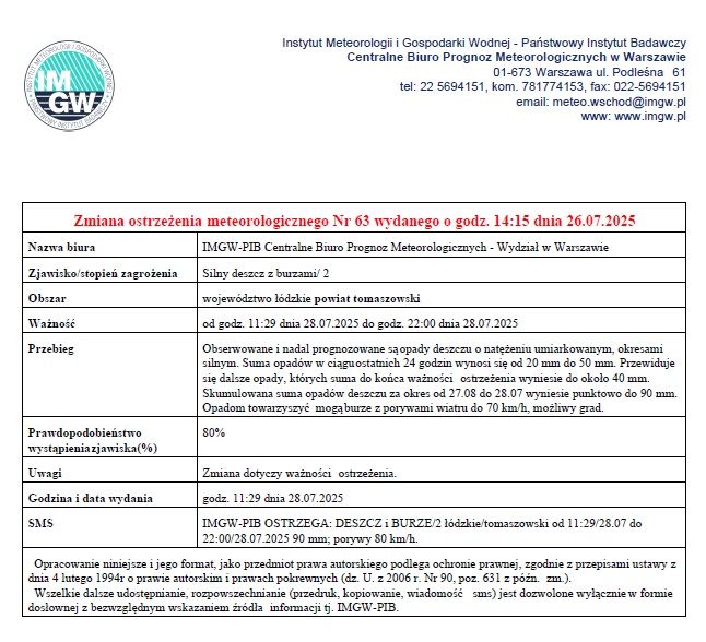 | Ostrzeżenie meteorologiczne Opady deszczu |
